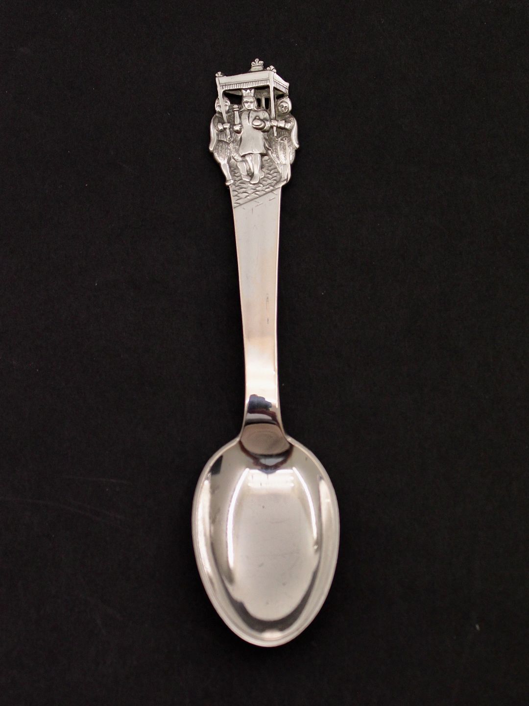 H C Andersen barne ske 14,5 cm. "Kejserens Nye Klæder" flot tretårnet sølv ingen graveringer emne nr. 548931