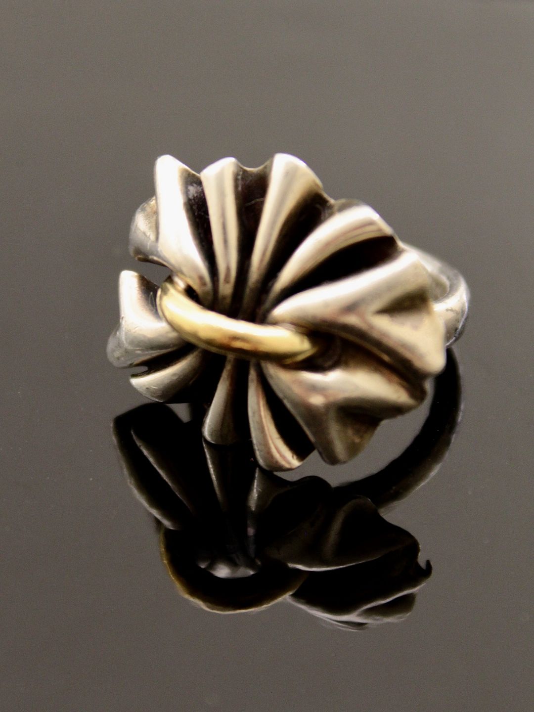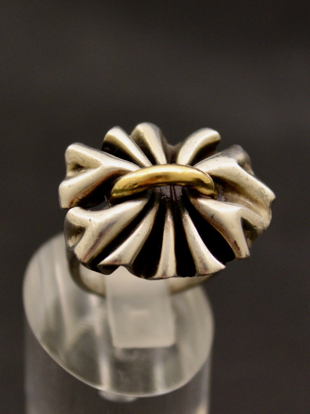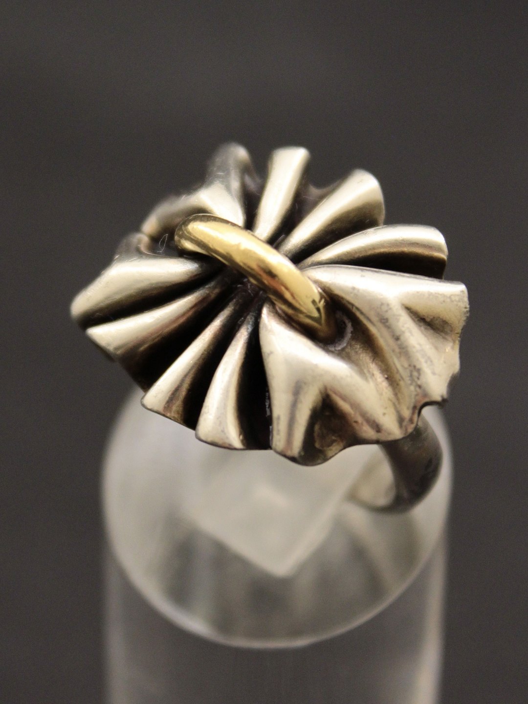 Georg Jensen design Lene Munthe vintage ring af sterling sølv med 18 kt. guld størrelse 54 emne nr. 552521