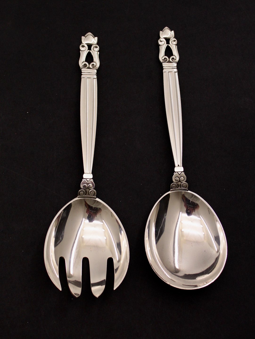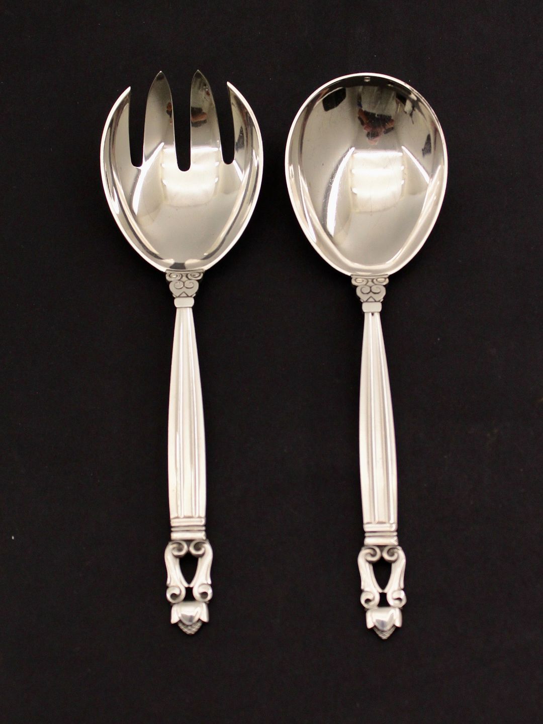 Georg jensen Acorn salad set 20 cm. sterling silver item no. 552869