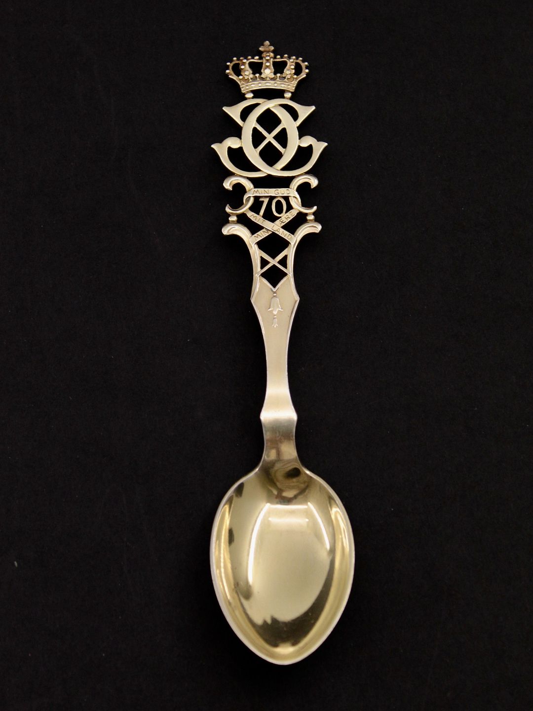 A. Michelsen sterling sølv minde ske for Kong Christian X's 70 års fødselsdag den 26. september 1940 designet af Jens Ingwersen emne nr. 563898