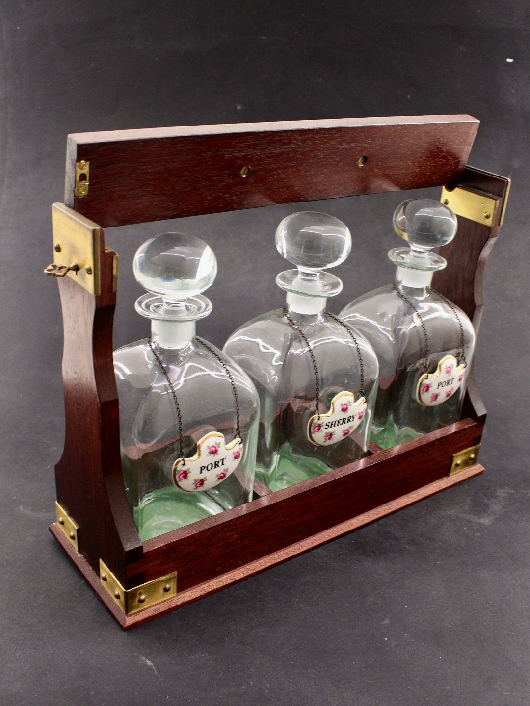 Tantalus 3 karafler i kasse med lås H. 25 cm. L. 33 cm. emne nr.580011