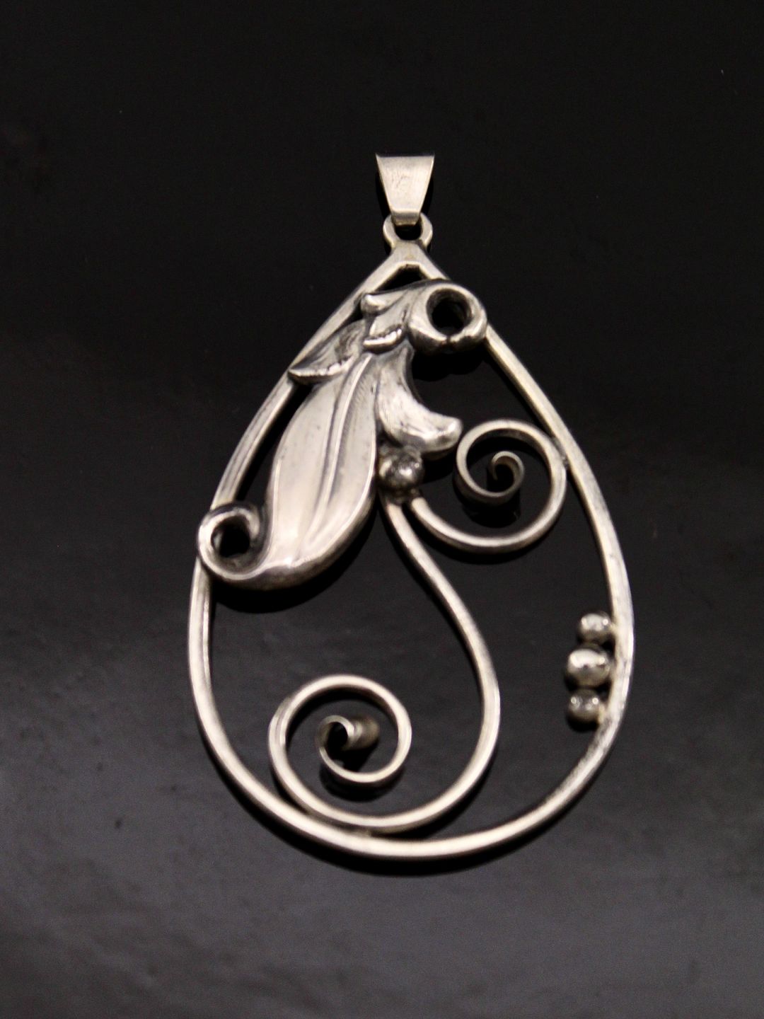 830 sølv art deco vedhæng 6,2 x 3,9 cm. fra sølvsmed C B Hansen København emne nr. 583060