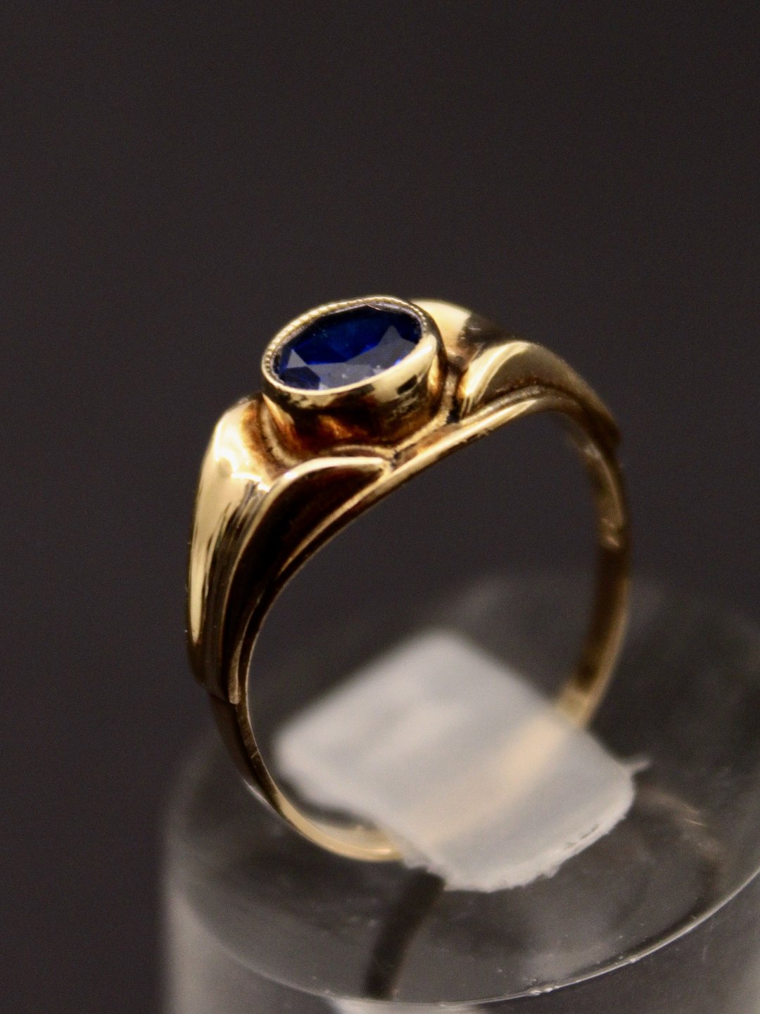 8 karat guld ring størrelse 53 med safir farvet sten fra juveler Herman Siersbøl emne nr. 584291