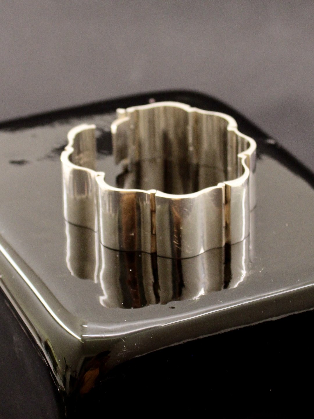 Nanna Ditzel for Georg Jensen "Surf" armbånd 18 cm. af sterling sølv 8 led med bølget form 432 emne nr. 585905