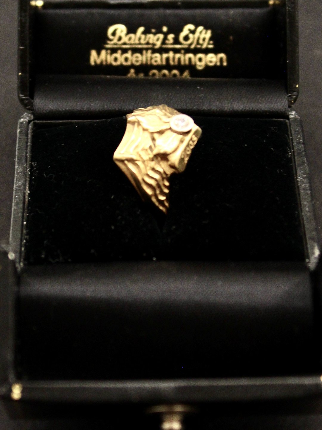 14 carat gold ring size 62-63 "Middelfart Ringen 2003" weight 8.3 grams with 0.08 ct. diamond subject no. 586407