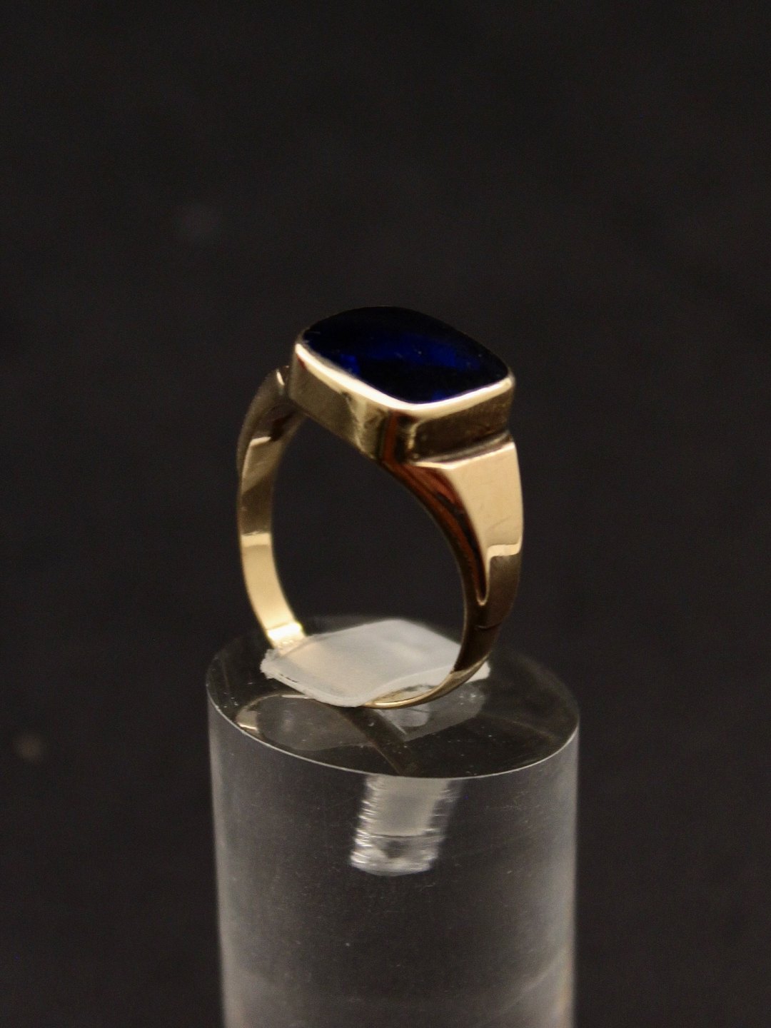 8 Karat guld ring størrelse 63 med mørkeblå sten fra guldsmed Tage Jensen Odder emne nr. 592197