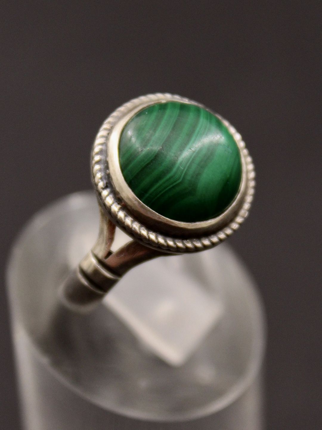 Sterling sølv ring størrelse 57 med malakit emne nr. 597201