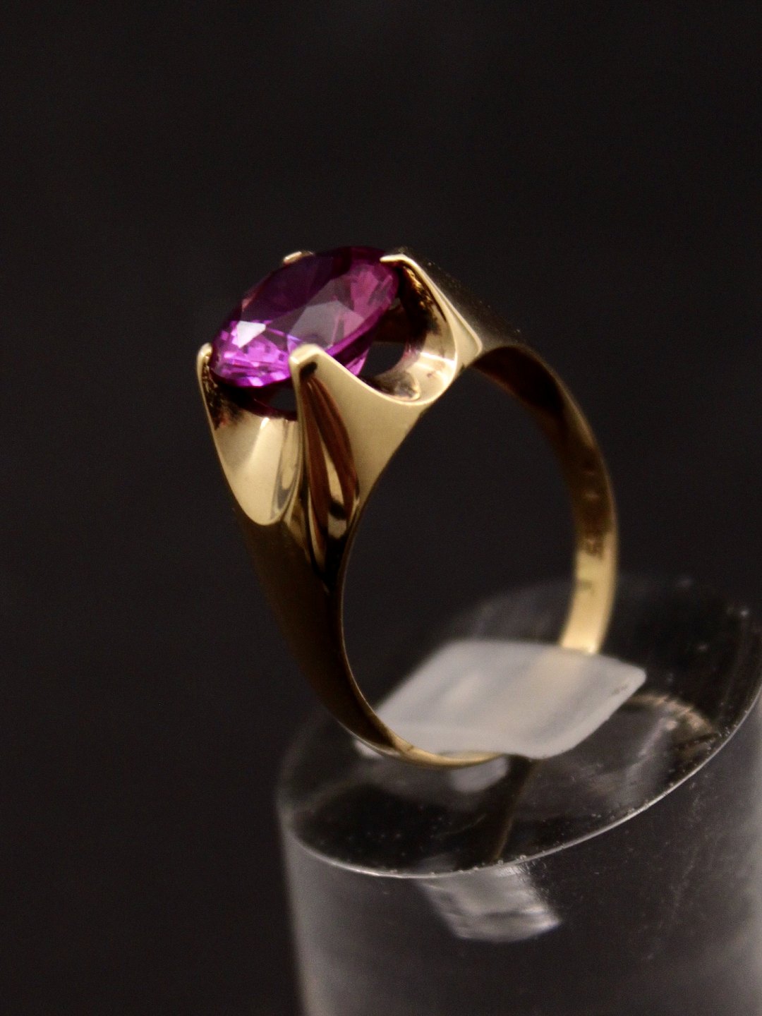 14 carat gold ring size 60 with amethyst stamped 585 Jø R for goldsmith Jørgen Rantzau Copenhagen item no. 602025