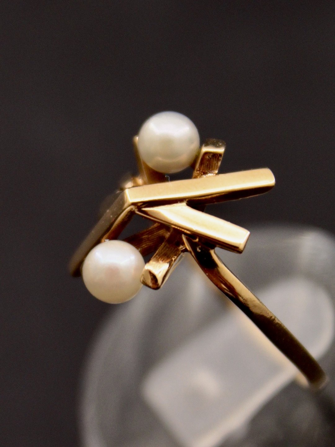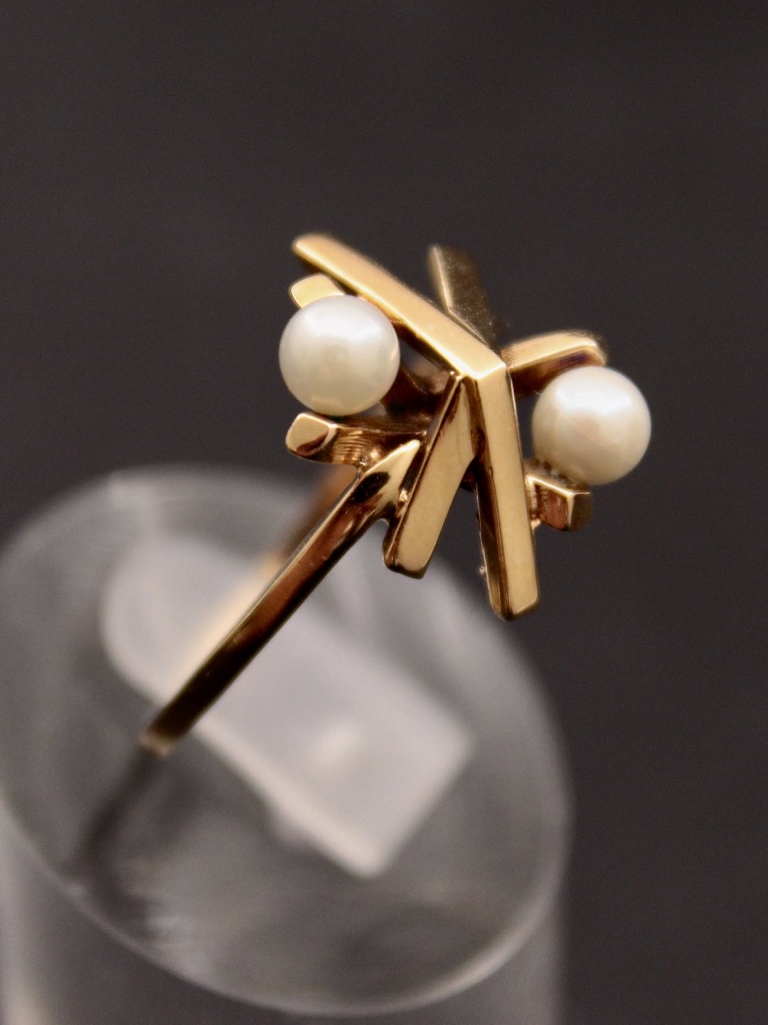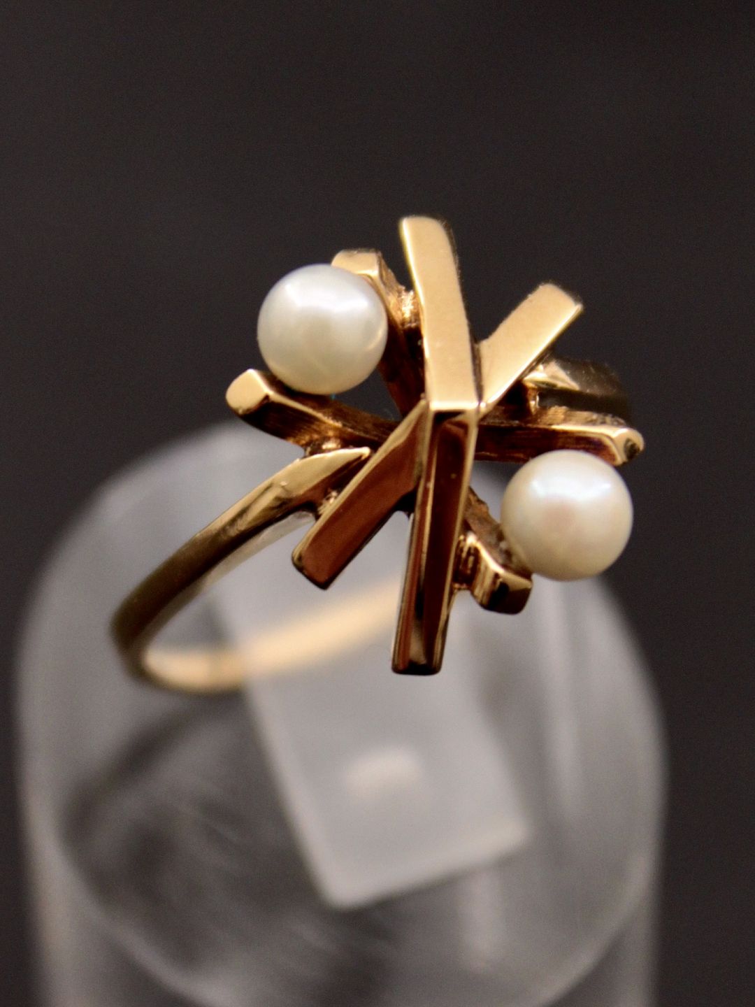 14 karat guld ring størrelse 58 med 2 ægte perler stemplet 585 IB&W for guldsmede Ibsen & Week København emne nr. 602925