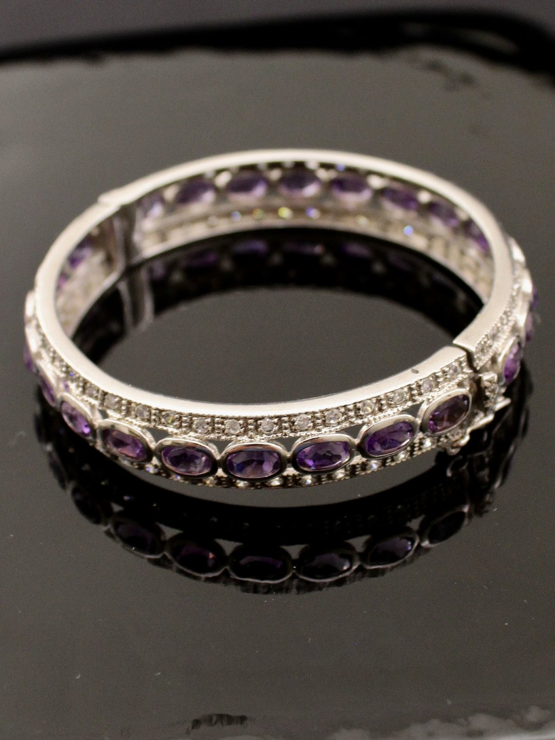 Sterling sølv armring med ametyster omgivet af klare stene Indvendig 5.5 cm. B. 1,2cm. stemplet 925 emne nr. 603846
