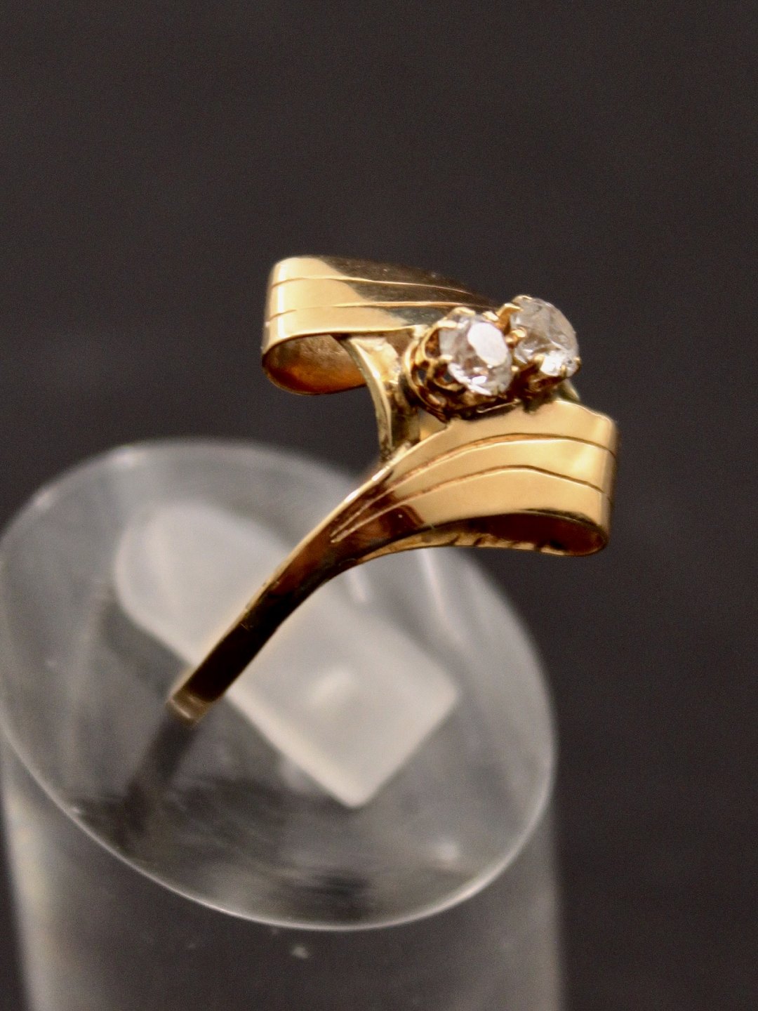 14 karat guldring med 2 zirkoner størrelse 57 stemplet 585 emne nr. 603902