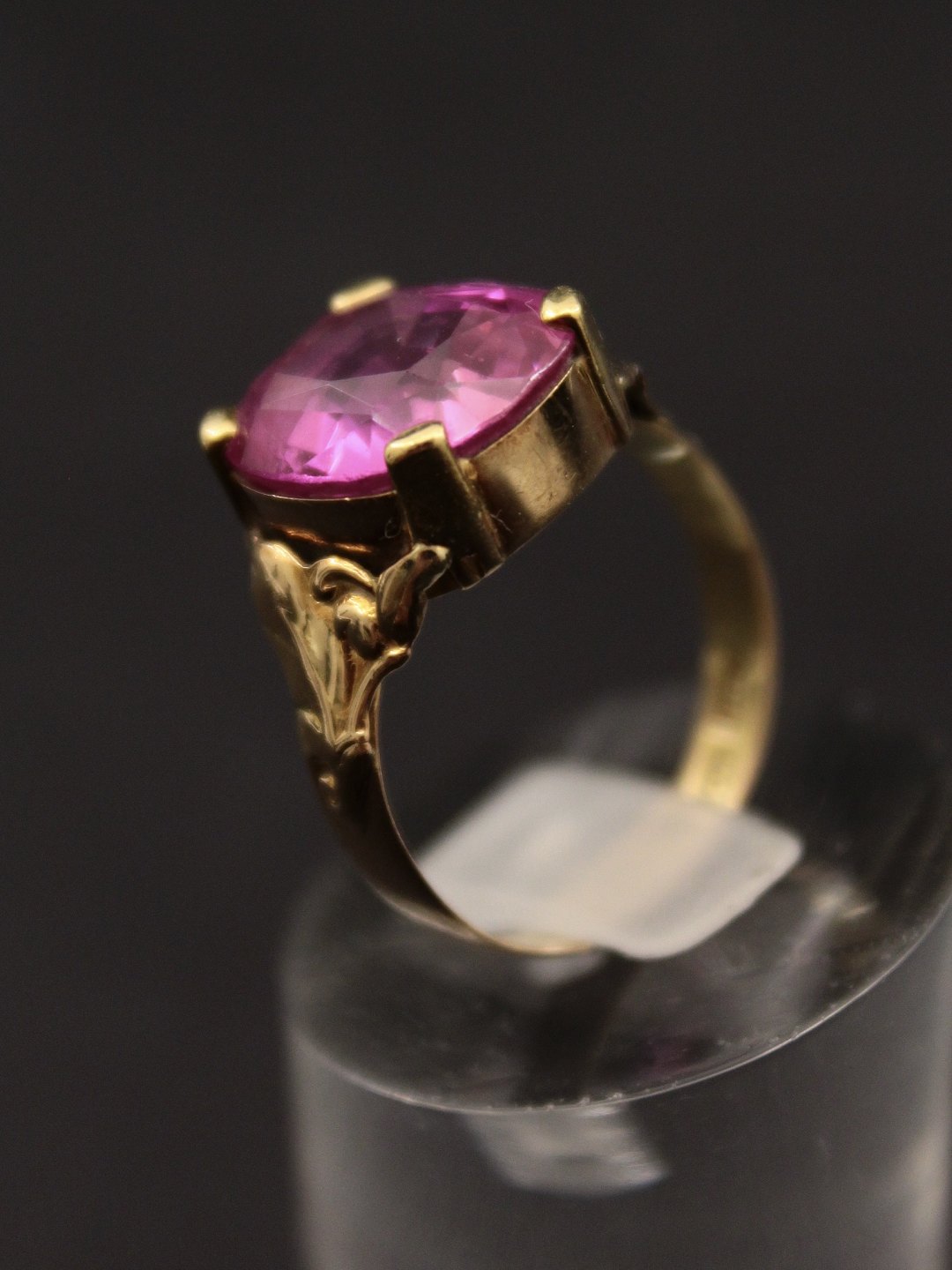 14 karat guldring med turmalin størrelse 55 stemplet 585 14K LG for guldsmed L Grønlykke København emne nr. 604881