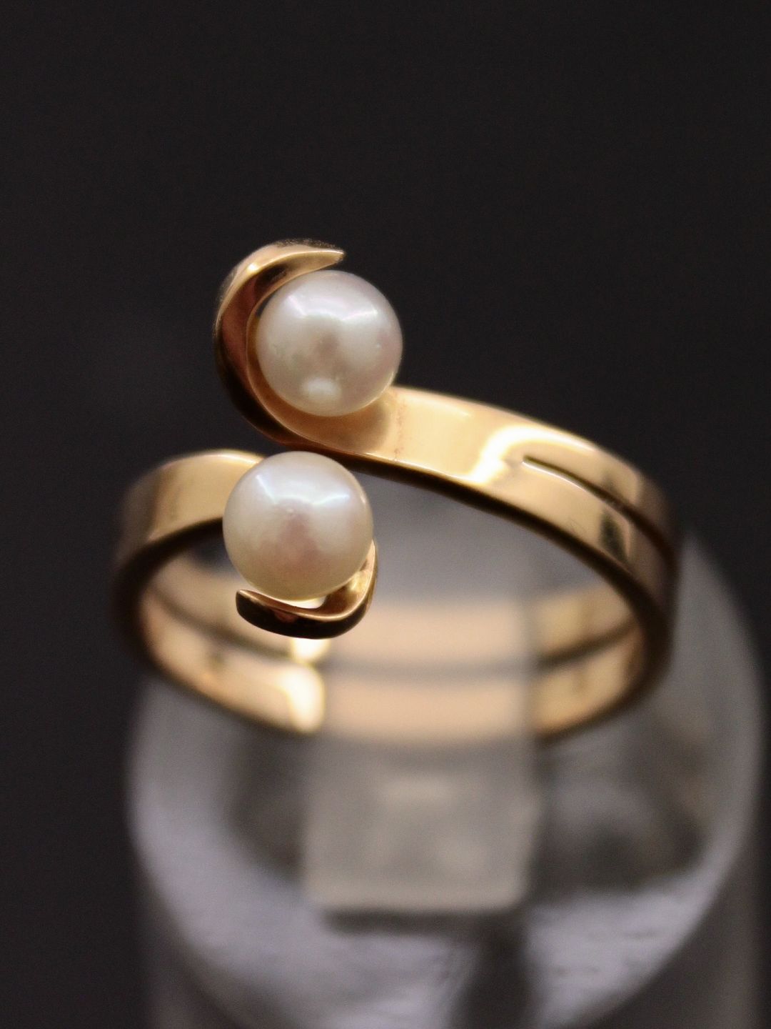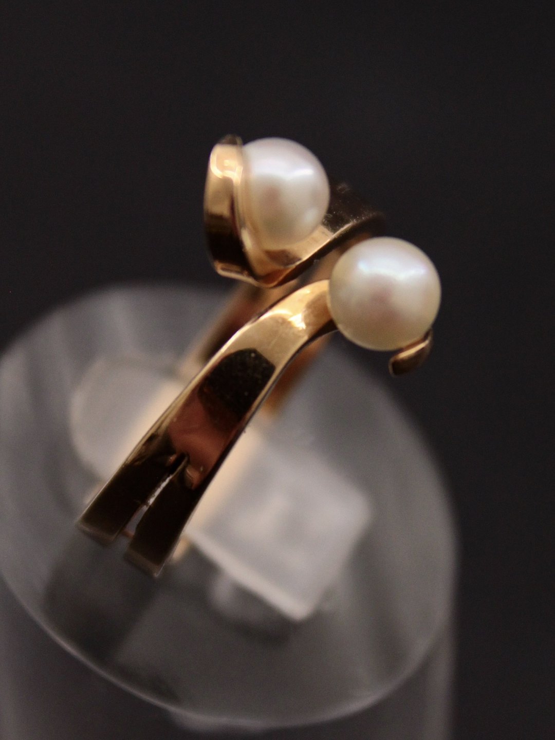 14 karat guld ring med 2 ægte perler størrelse 57-58 stemplet 585 JØL for guldsmed Jørgen Larsen København emne nr. 606977