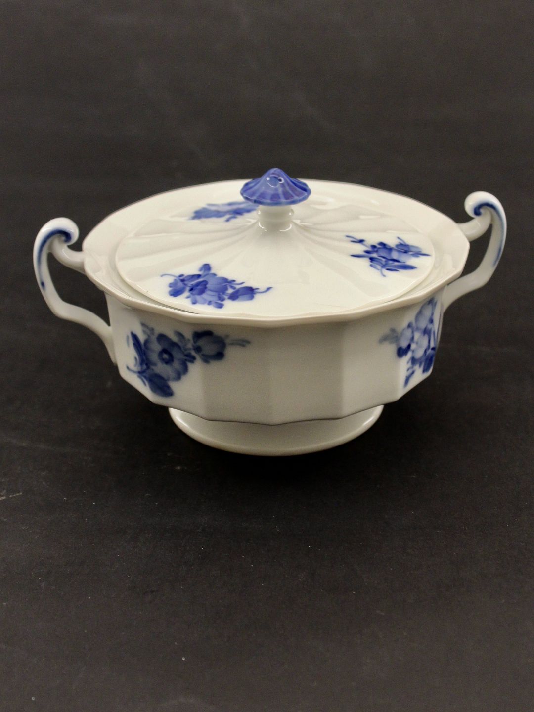 Royal Copenhagen Blå blomst Kantet Sukkerskål 10/8563, 17 cm. i diameter, 9 cm. høj 1. sortering emne nr. 611029