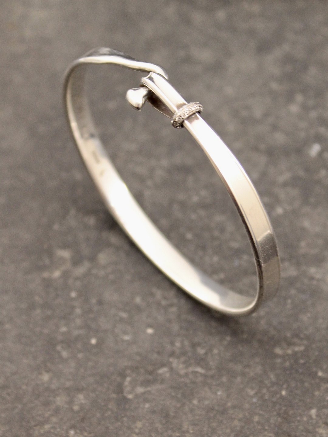 Georg Jensen Sterling silver Turan bangle with diamonds #204 design Vivianna Torun Bylow-Hybe inside 6 x 5.3 cm. item no. 612263
