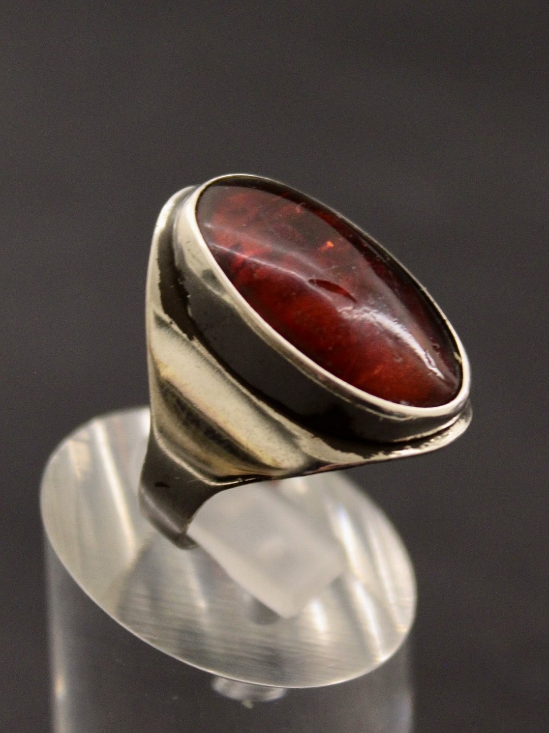 830 sølv vintage ring størrelse 56 med rav 2,2 x 1,3 cm. emne nr. 625910