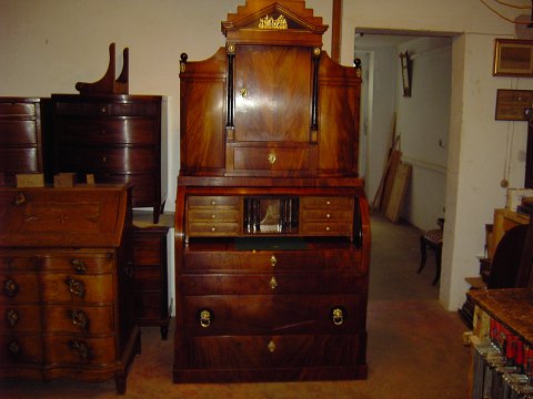 Flot chatol med overdel. Snedkermæssigt gennemrestaureret. Fantastisk flot silkemat overflade. Messingbeslag og diverse ornamenteringer udbedret og står nu meget flot.