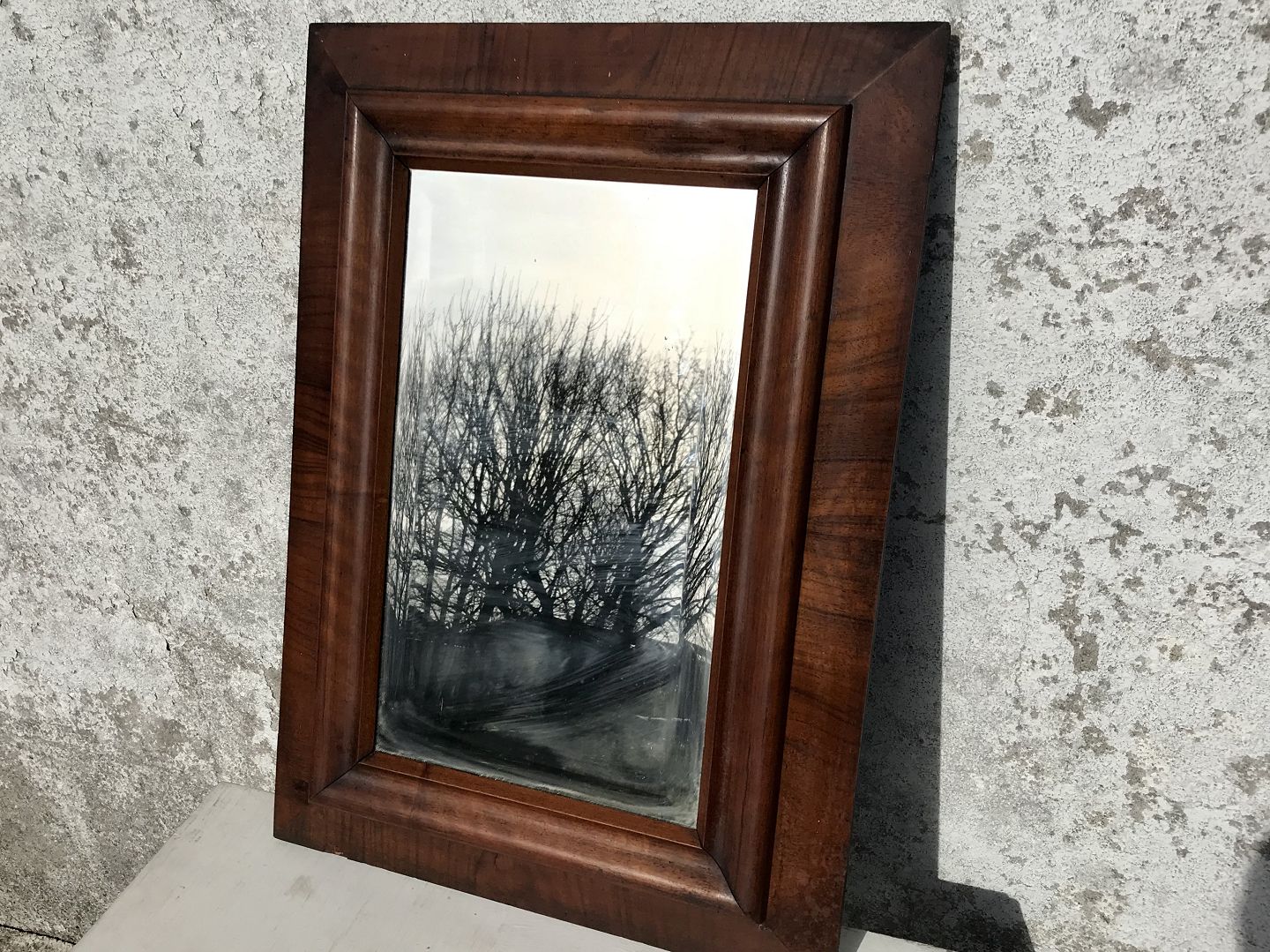 Mirror in mahogany veneer, 61cm high, 44cm wide, facet cut mirror * Small rejection in the mahogany *