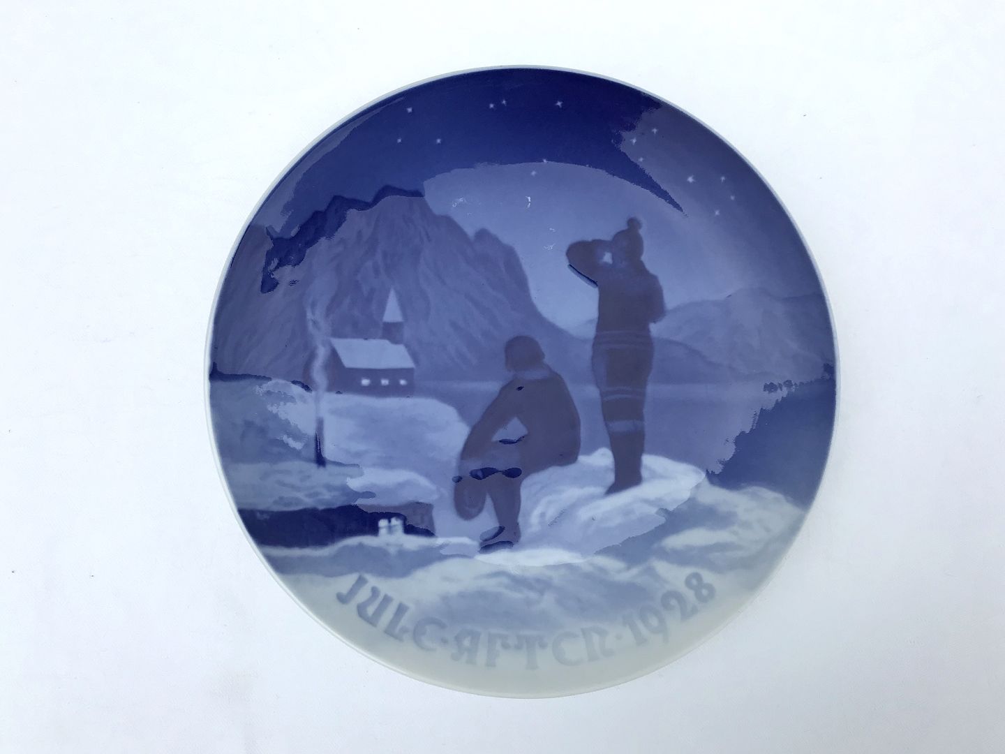 Bing & Grondahl, Christmas plate, 1928, Greenlanders at village church, 18cm in diameter, Design Johannes Achton Friis * Perfect condition *
