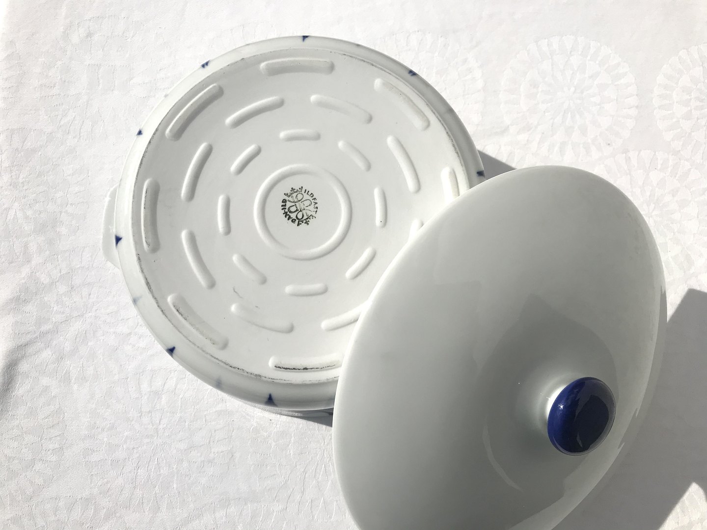 Lyngby, Danild, Harlequin, Blue flame, Large pot with lid, 13 cm high, 24 cm in diameter * Beautiful condition *