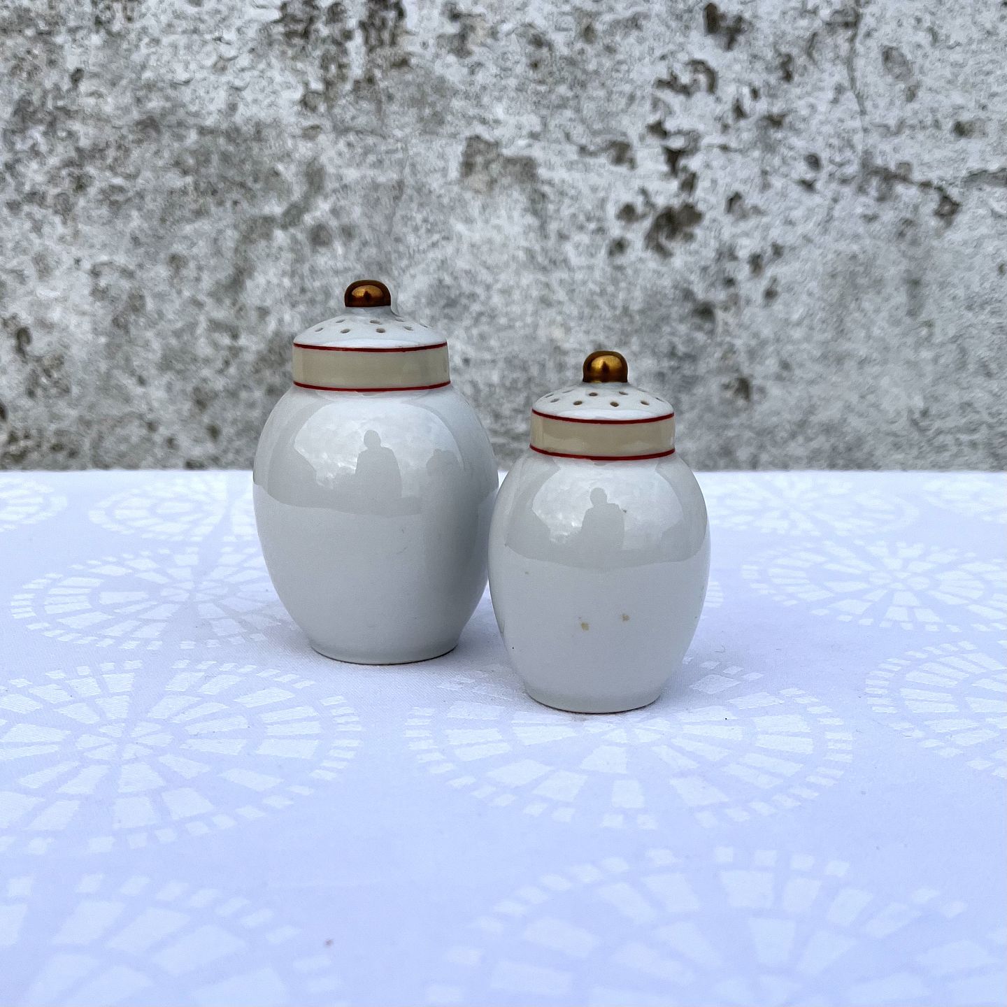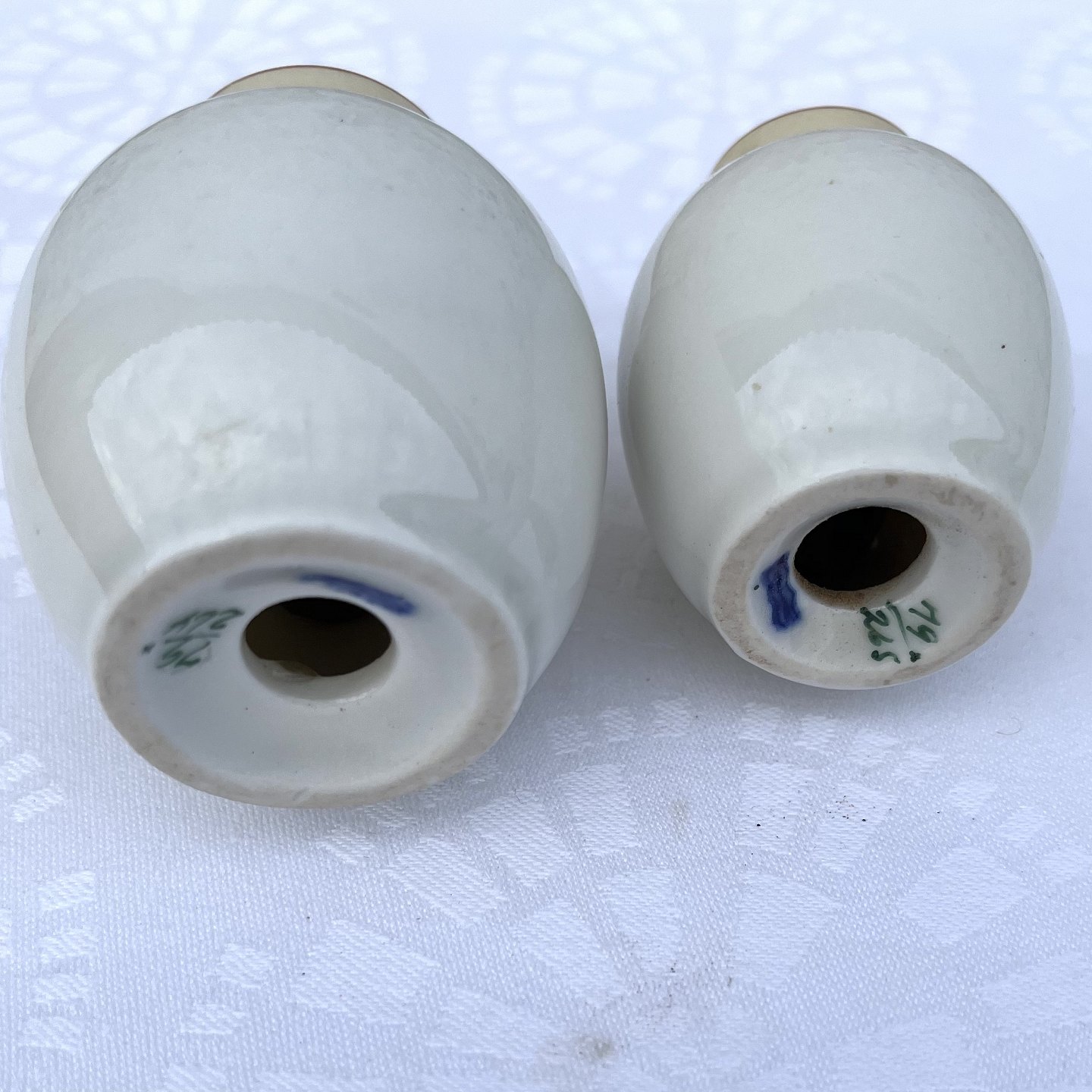Royal Copenhagen, The Spanish porcelain, salt & Pepper set # 79/264, 265, 7 & 8cm high, 1st grade, Design Christian Joachim * Nice condition * Sold without stopper