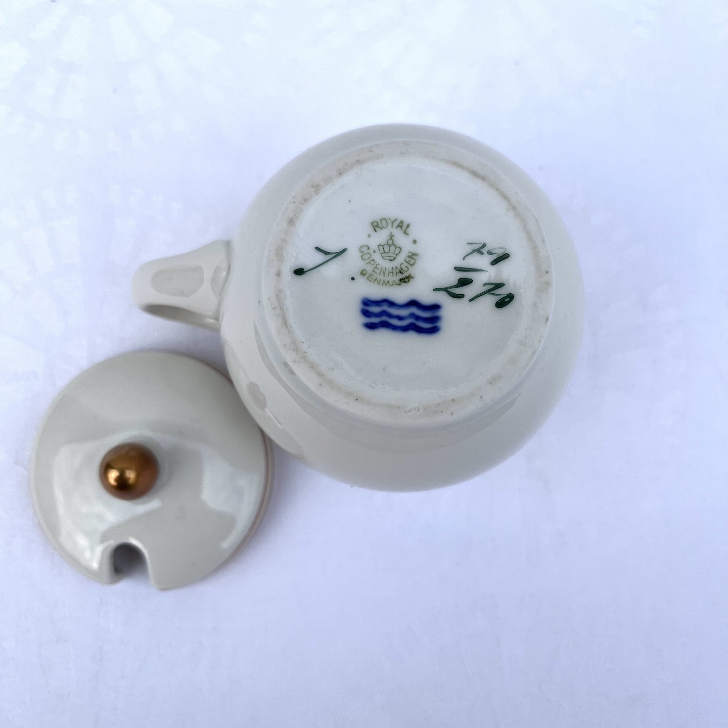 Royal Copenhagen, Spanish porcelain, Mustard jar # 79/270, 6.5cm in diameter, 9cm high, Design Christian Joachim * Nice condition *