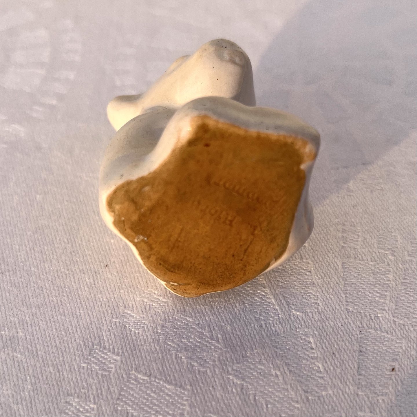 Bornholm ceramics, Hjort, Little white bear sitting on his hands, approx. 4.5 cm tall * Nice condition with small blue paint stains *
