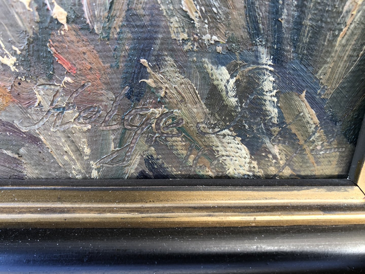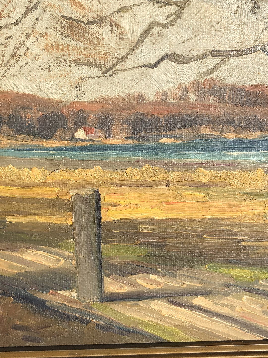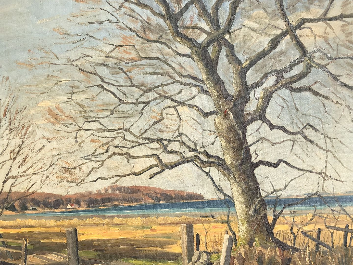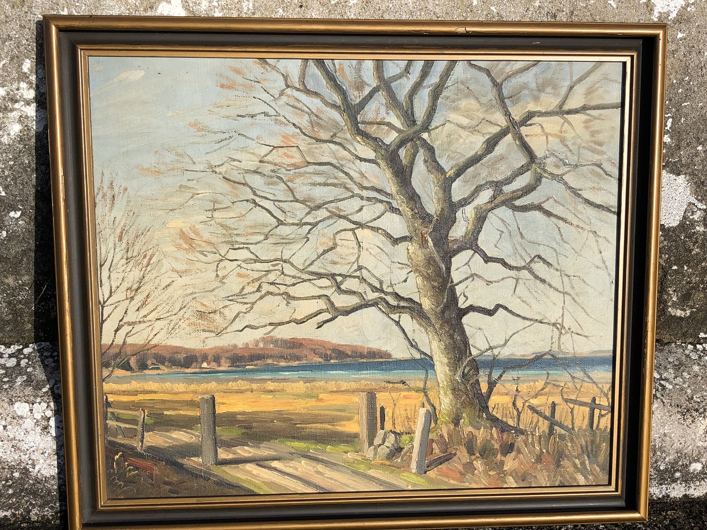 Oil painting on canvas. Large tree and water view. Signed: 40 Helge and a surname we cannot decipher. 55x64 cm with frame.