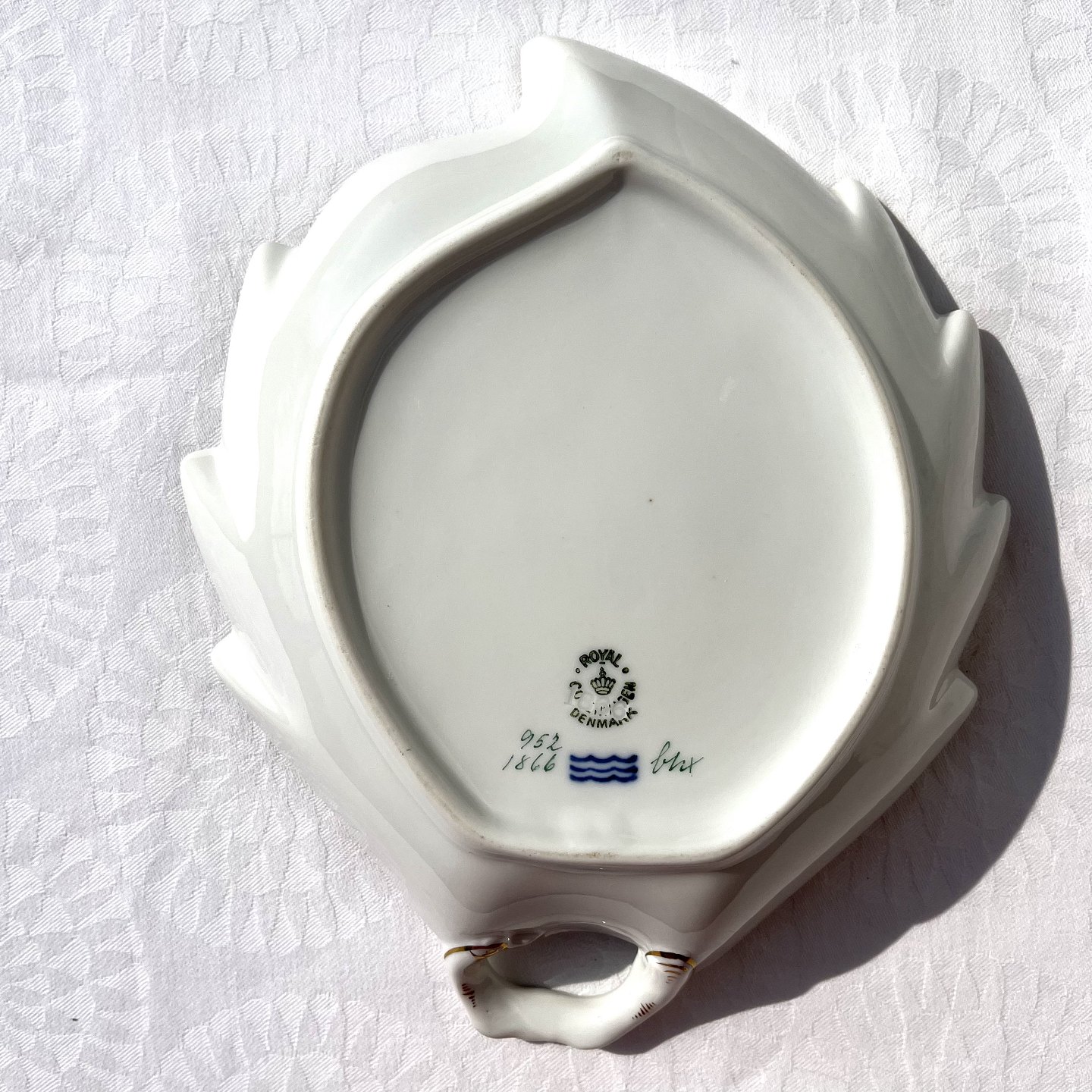 Royal Copenhagen, Green curved, Leaf dish # 952/1866, 22.5cm wide, 18cm deep, 1st grade * Perfect condition *