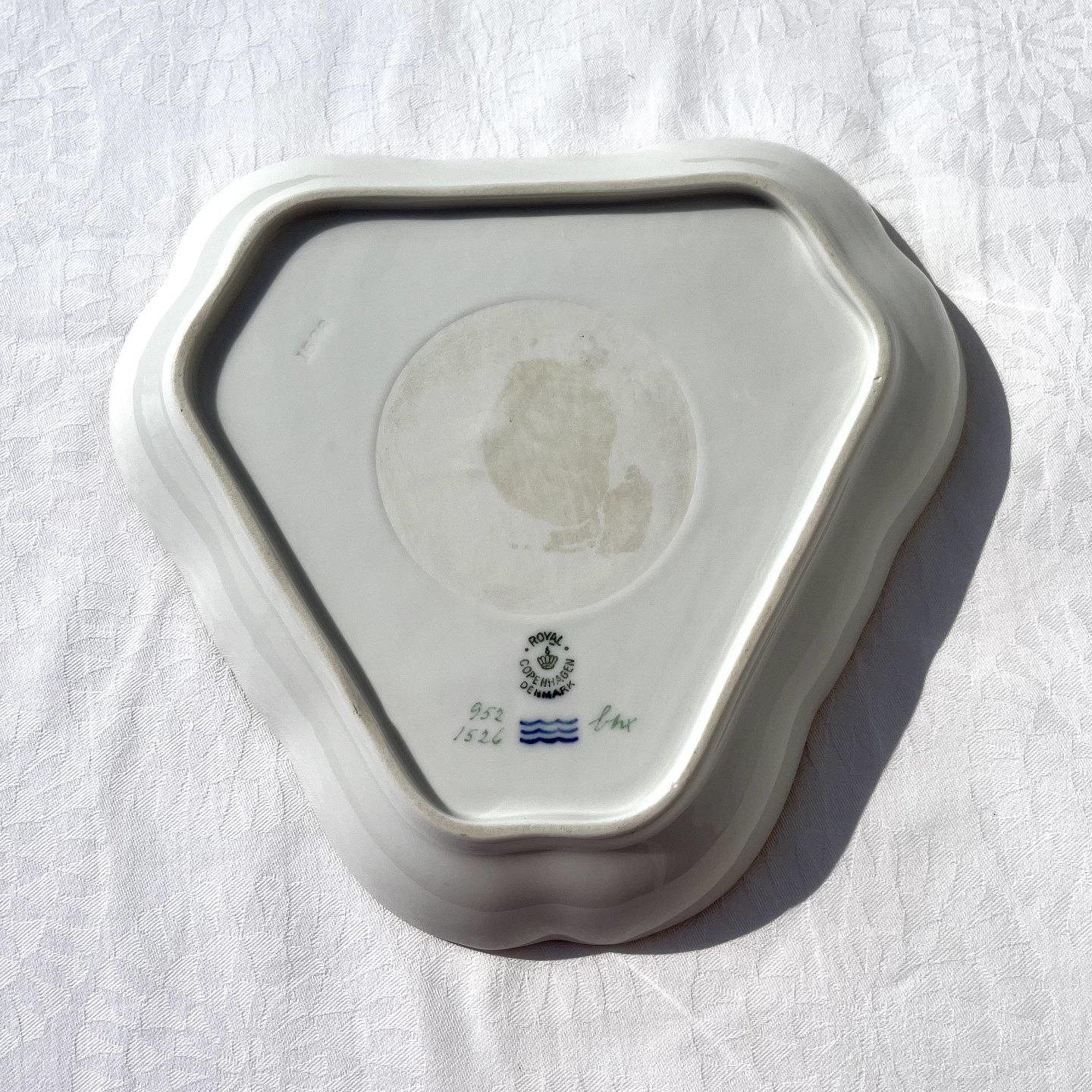Royal Copenhagen, Green curved, Triangular dish 952/1526, 20.5cm wide, 1st grade * Perfect condition *