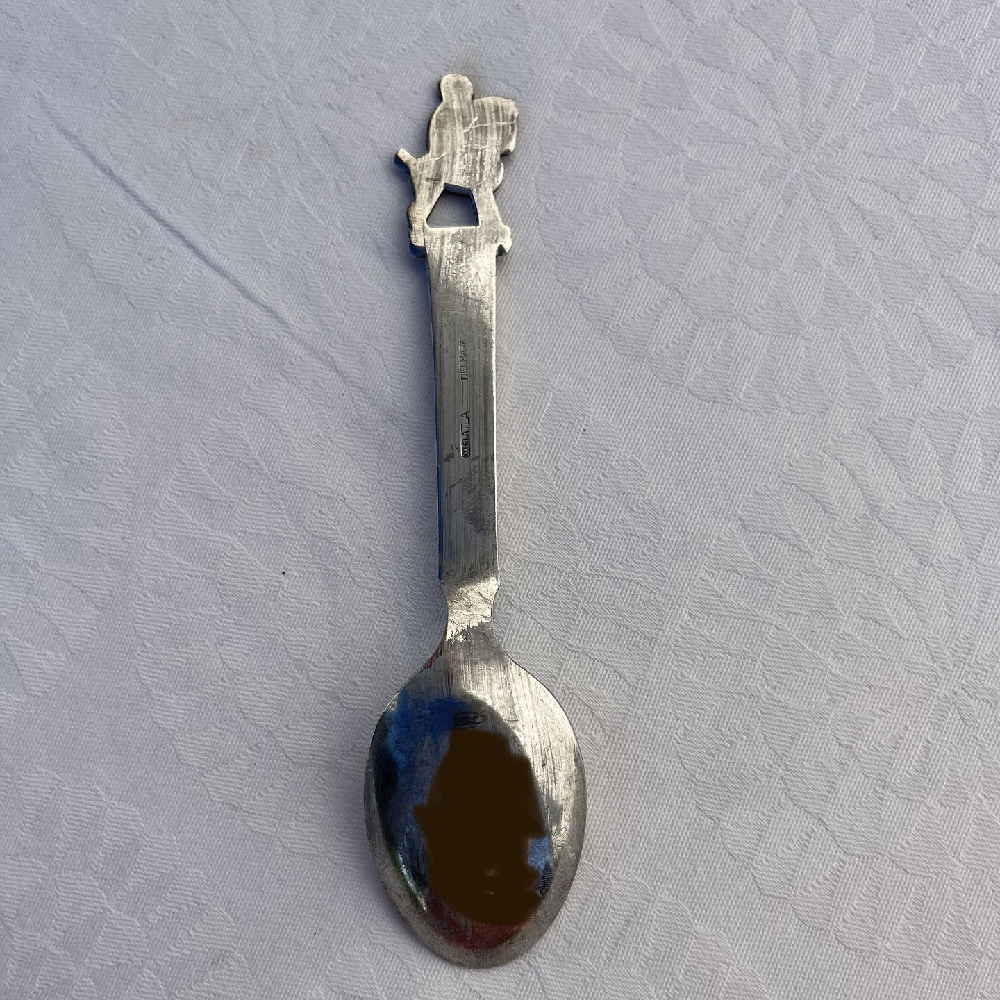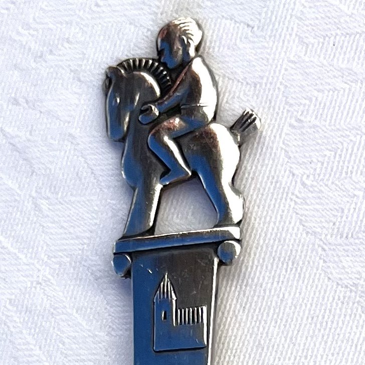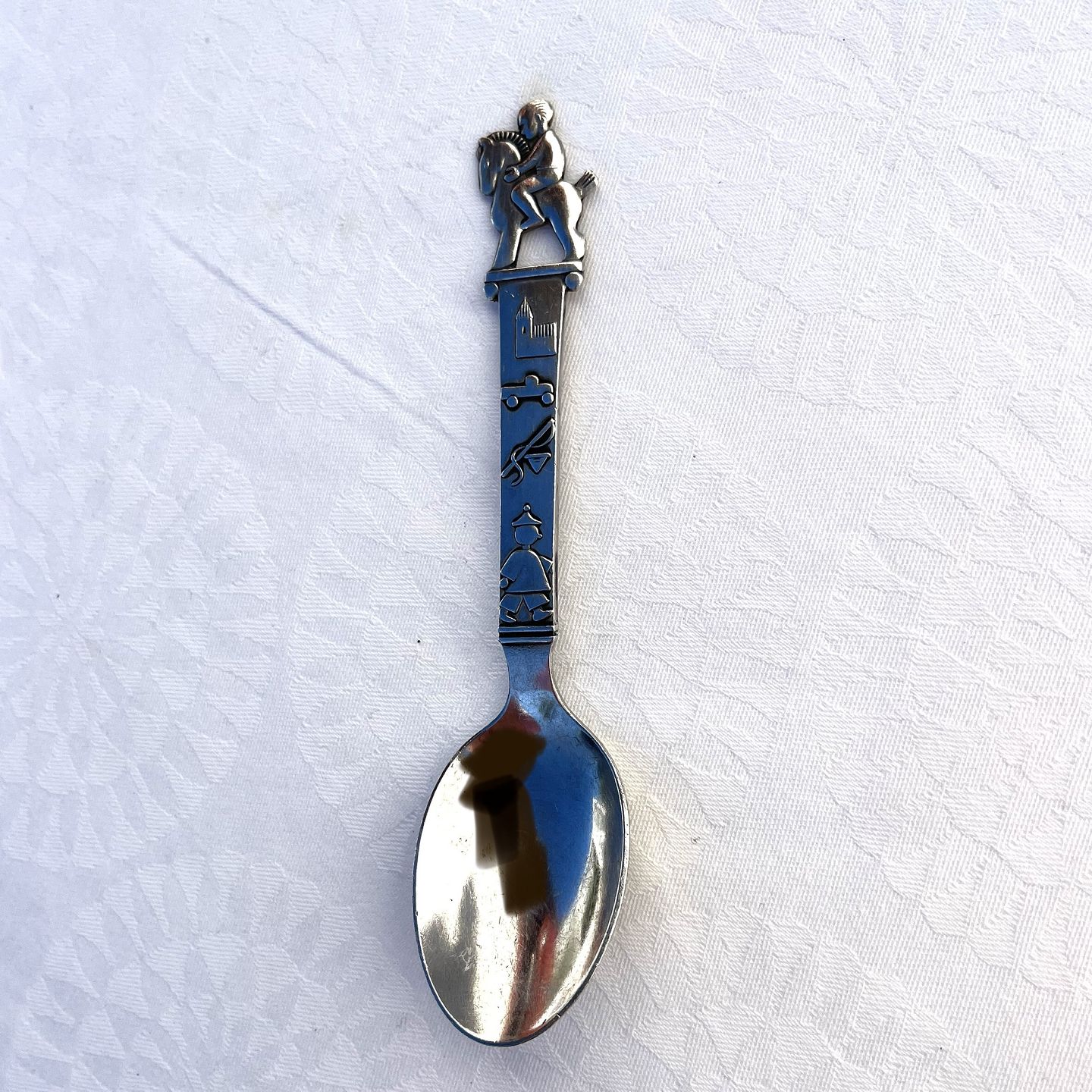 Children's spoon with boy on horse and other toy symbols. silver-plated from Cohr silver goods factory, length 15 cm, nice used condition.