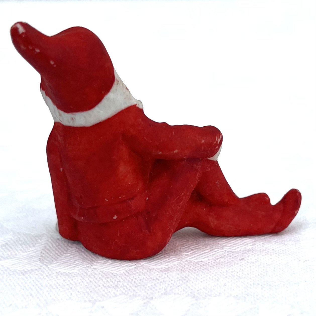 Seated Santa Claus, Bisquit Porcelain Santa, 4 cm high, 4.5 cm wide, From the beginning of the 1900s Christmas pixie, *Nice patinated condition*