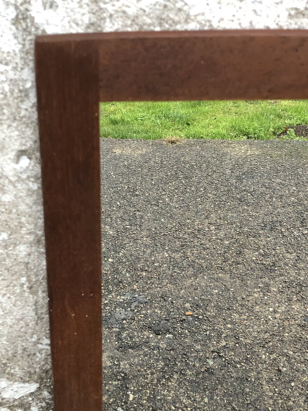 Mirror in teak wood frame. Danish modern from the 1960s. Damage to the lower corner (see photo), otherwise nice used condition. Dimensions 67x41 cm
