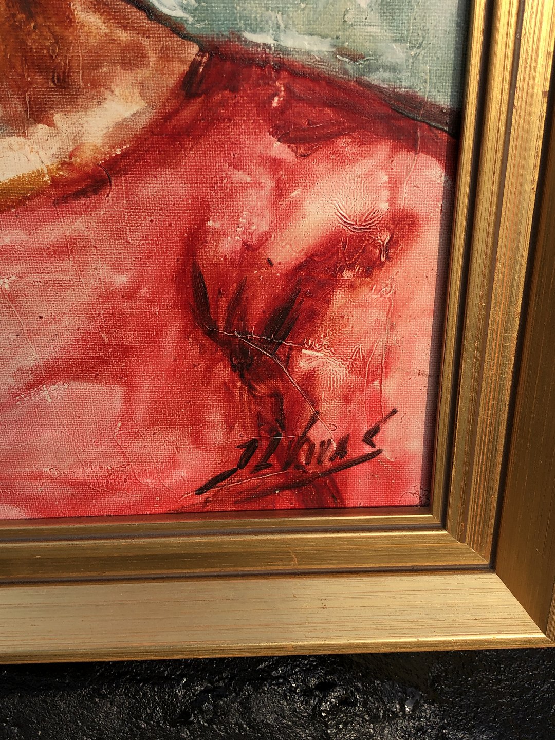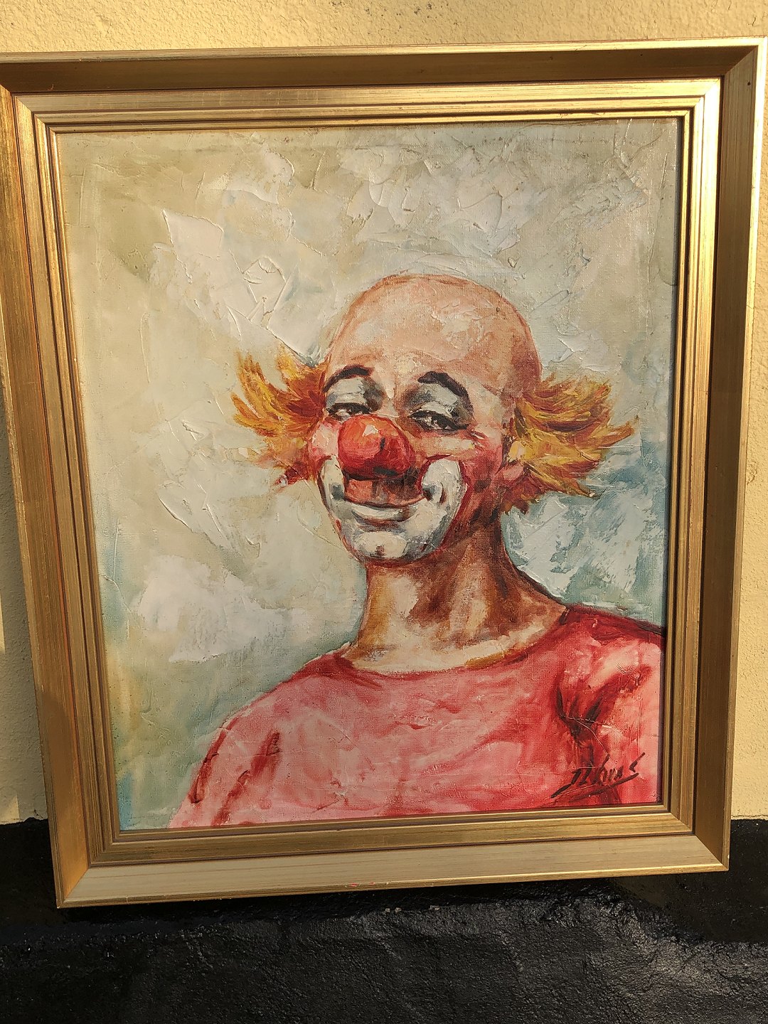 Oil painting on canvas. Melancholy clown. Dimensions with frame 45 x 53 cm.