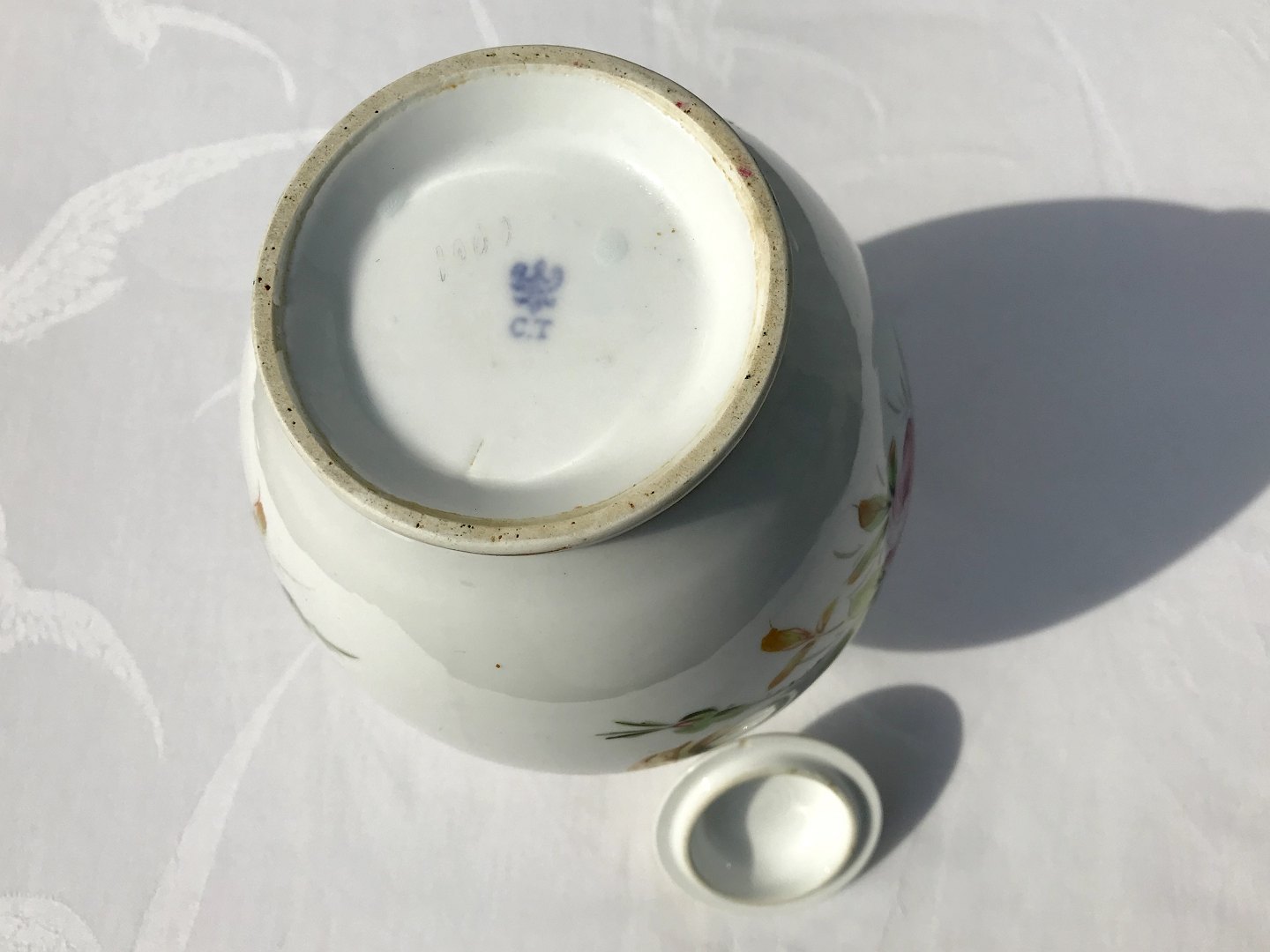 Chocolate Jug, C.T. Altwasser, Deutschland, Blumen verziert, 22,5 cm hoch, 20 cm breit * Guter Zustand mit kleiner Kerbe am Boden des Deckels *