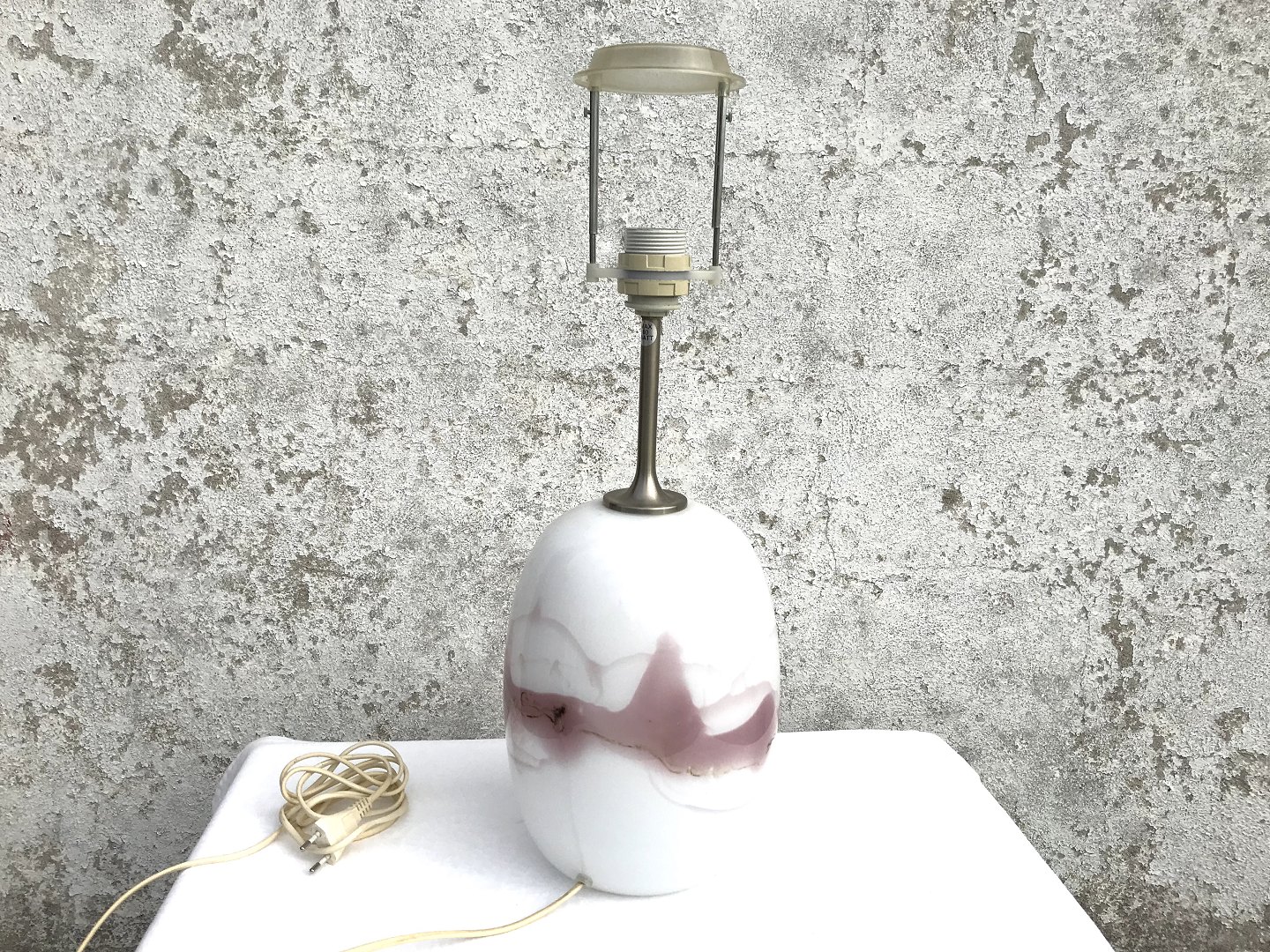 Holmegaard, Sakura, Tischlampe, Opalweißglas mit grau / rosa Verzierung, 45 cm hoch (inkl. Sockel), Design Michael Bang * Perfekter Zustand *