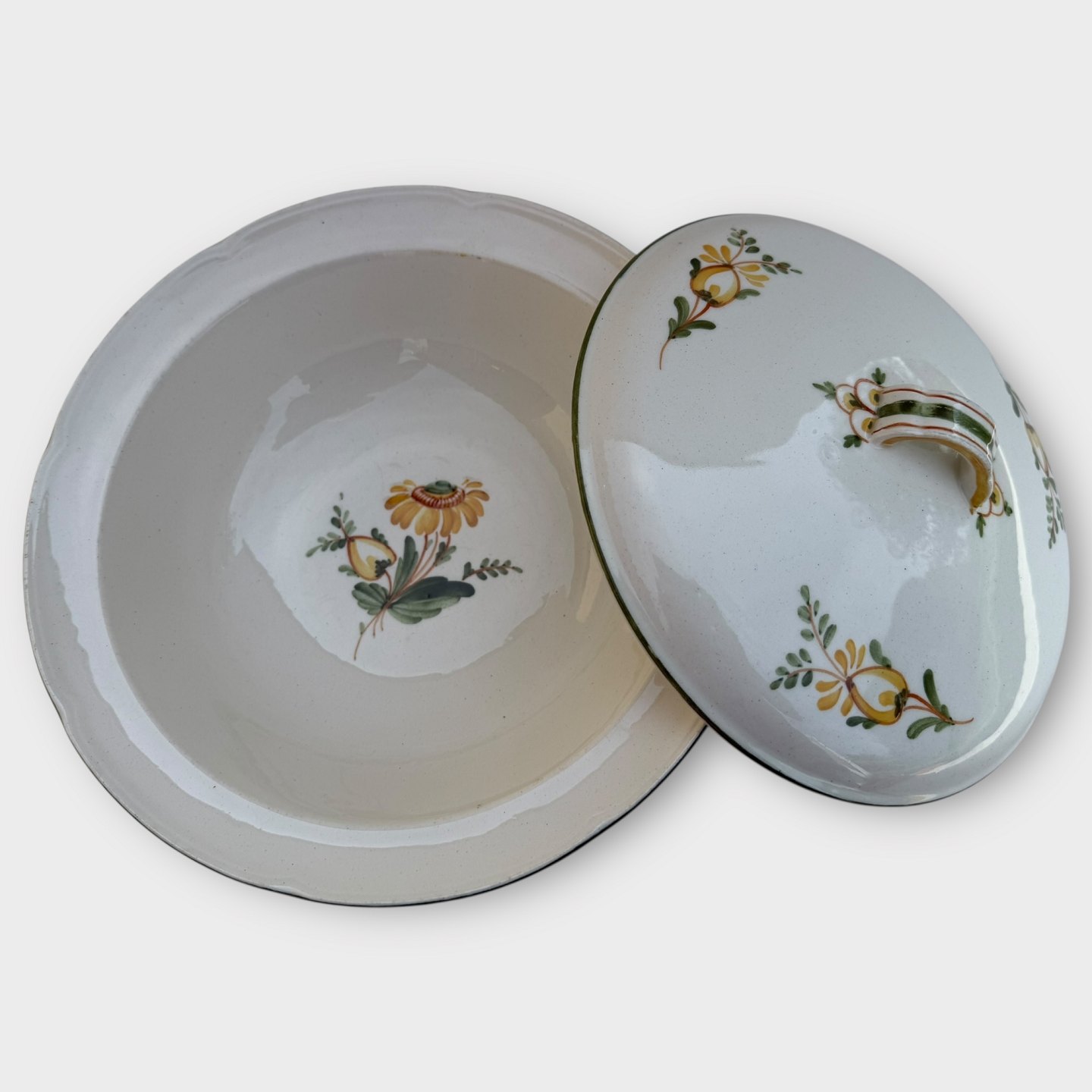 Aluminia, Schüssel mit Deckel, kleiner Glasurabplatzer am Deckelgriff (siehe Foto), sonst guter Zustand., Durchmesser 25 cm