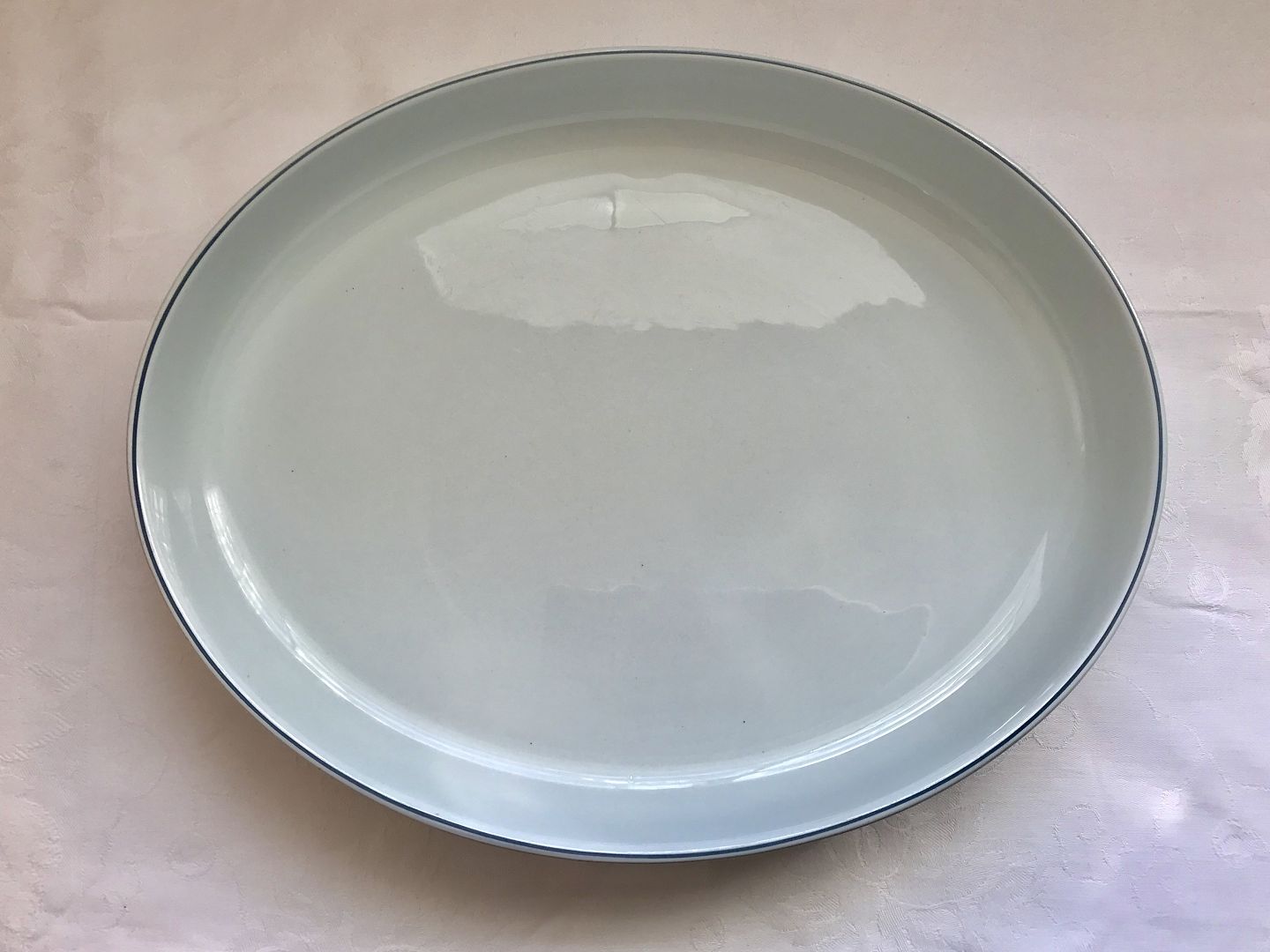 Royal Copenhagen, Aluminia, Blå kant, Ovalt fad #3079, 33,5cm bred, 26,5cm dyb, 6cm høj, Design Grethe Meyer *Med brugsspor*
