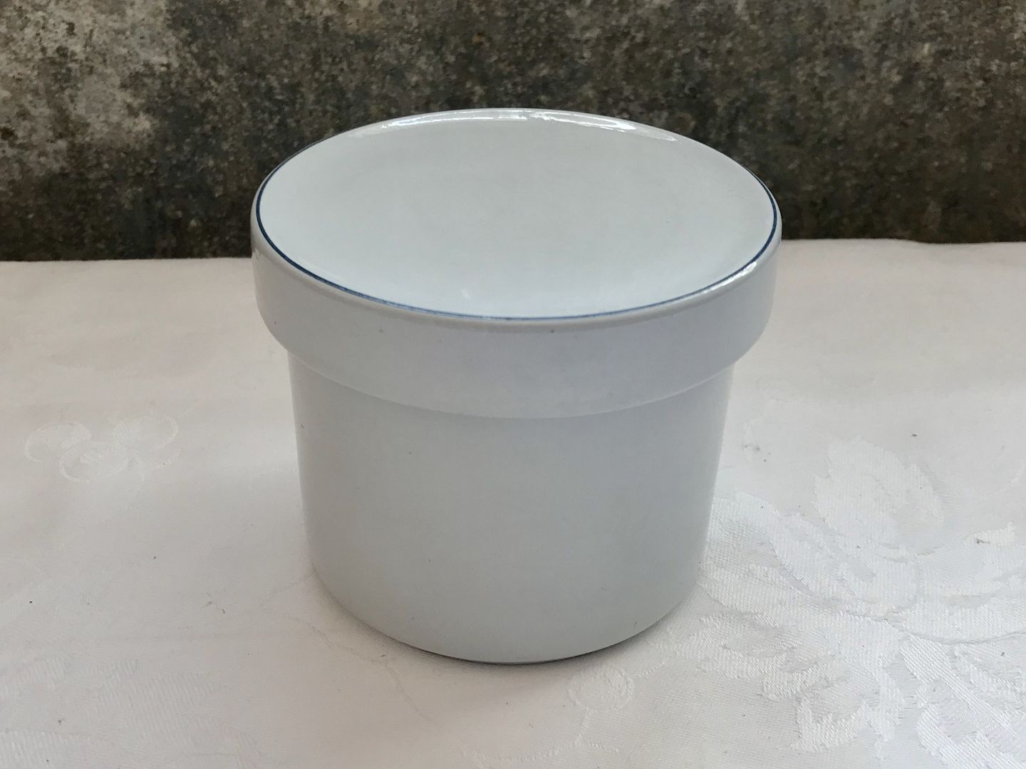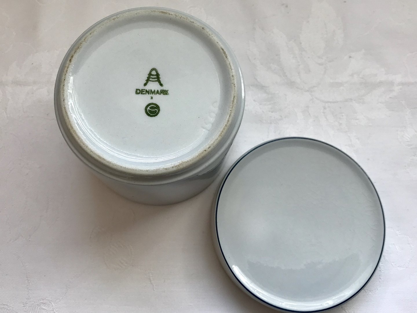 Royal Copenhagen, Aluminia, Blå kant, Lågkrukke #3051, 8cm høj, 9cm i diameter, Design Grethe Meyer *pæn brugt stand*