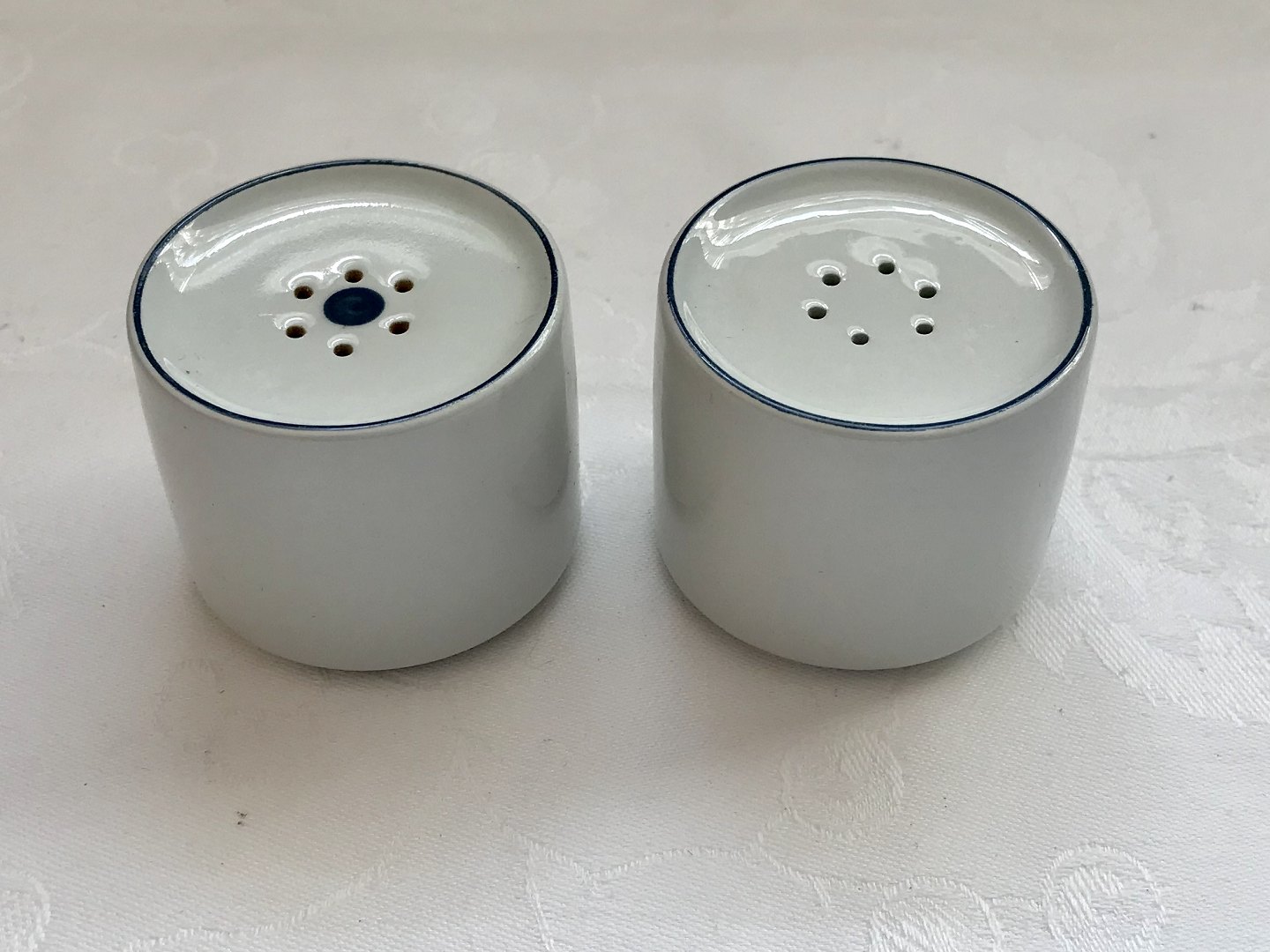 Royal Copenhagen, Aluminia, Salt & Pepper Set, 4cm tall, 4.5cm in diameter, Design Grethe Meyer * Nice condition *