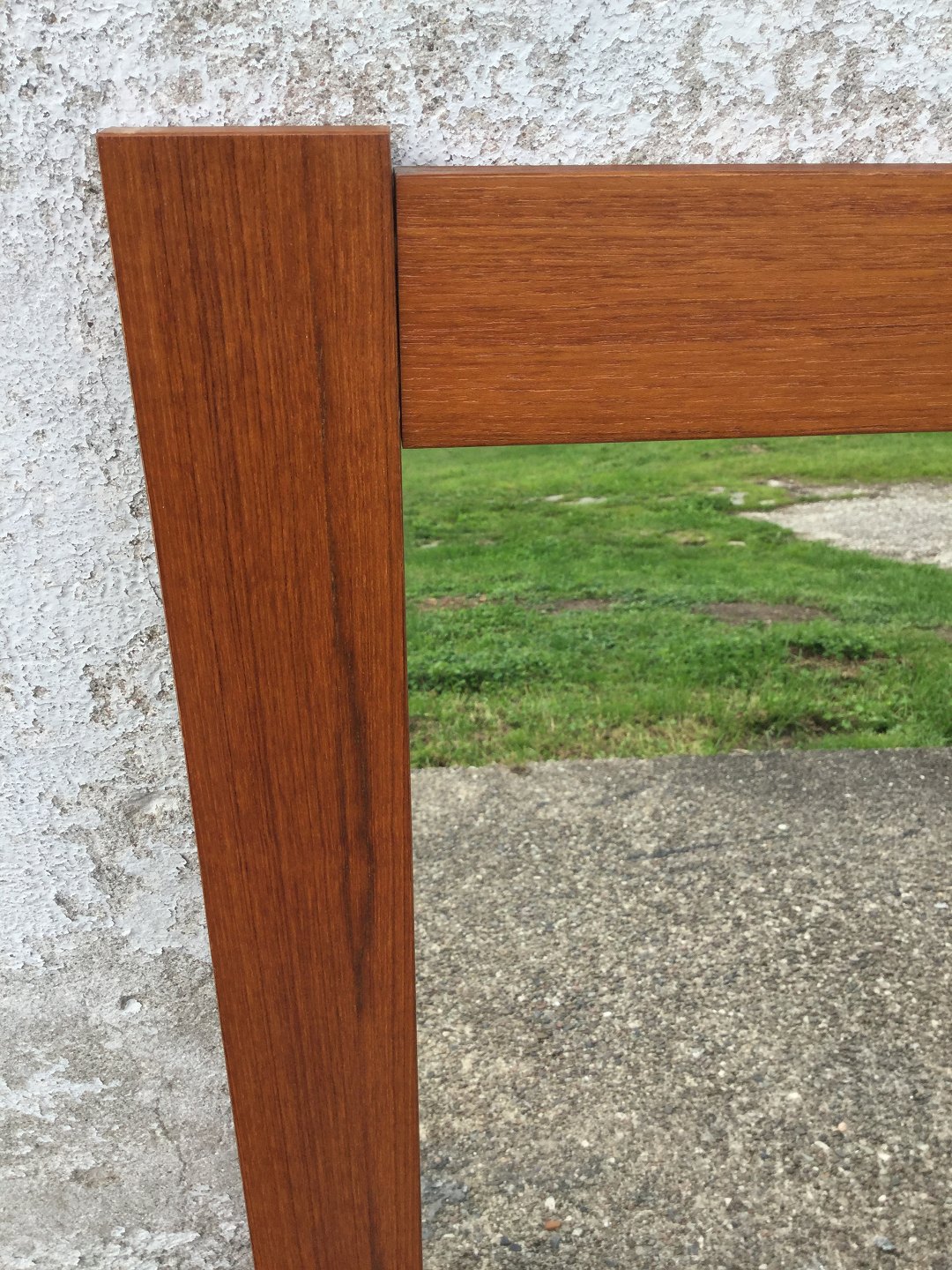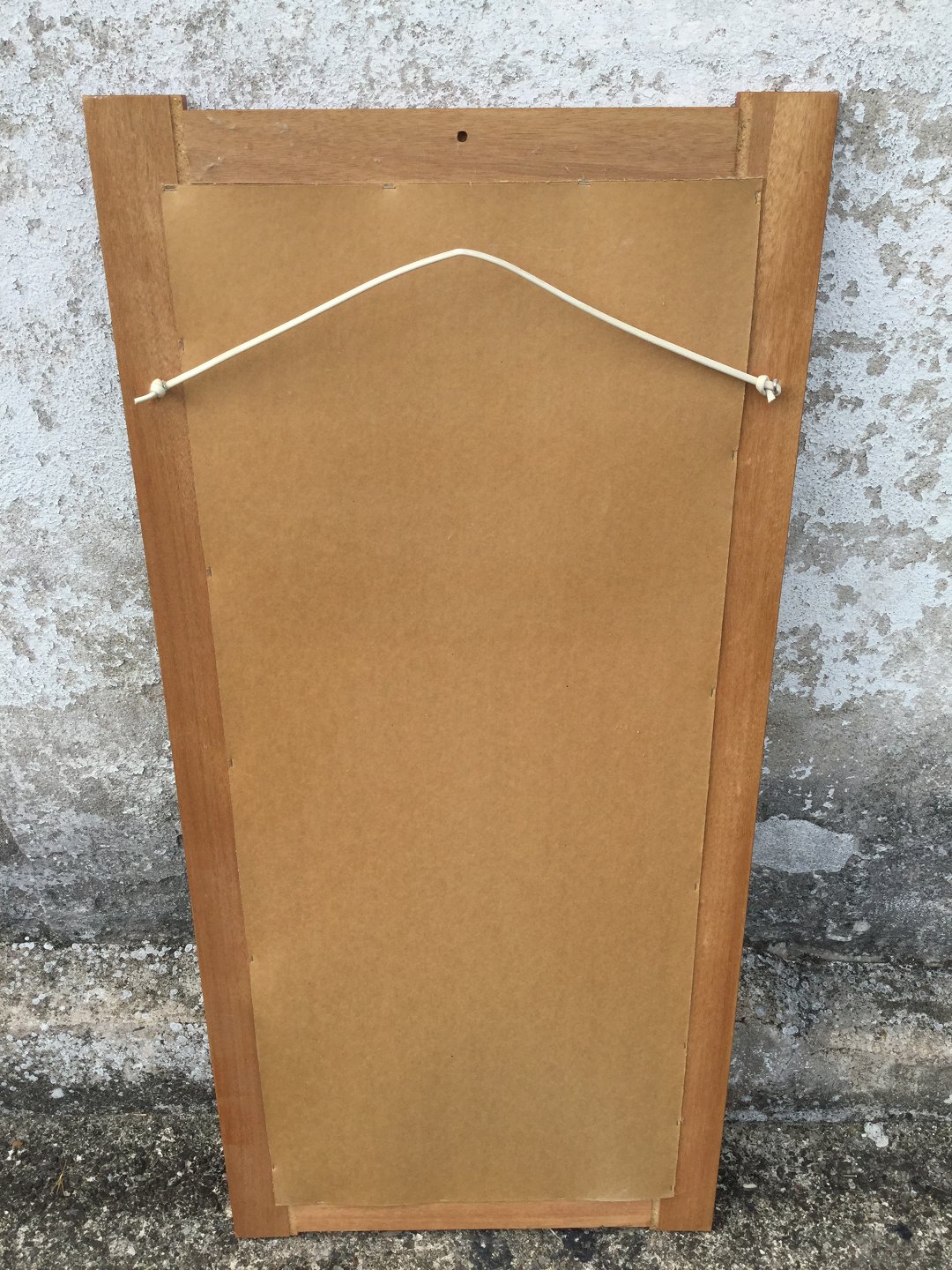 Mirror with wide frame in teak veneer. Dimensions: 114x52.5 cm