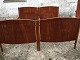2 senge i teakfiner med høje gavle og afstandsstykker i messing. Fremstår uden bund. Udvendige mål (for en seng) 198x92 cm.