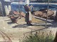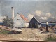 Theodor Skovgaard. Motiv med fiskekone der tørre fisk, sandsynligvis fra Bornholm. 63x93 cm, med ramme 76x106 cm.