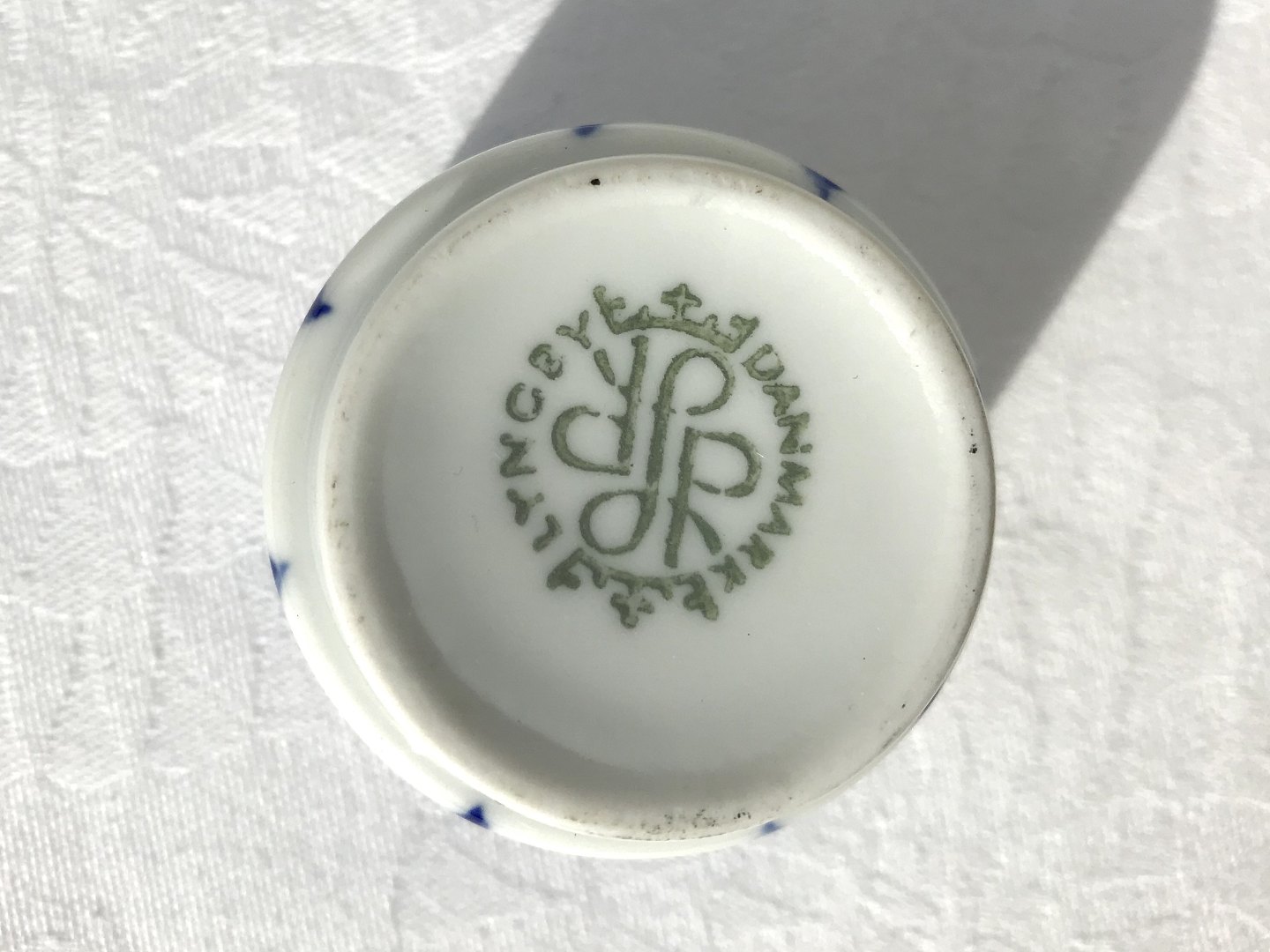 Lyngby, Danild 40, Harlekin, Blå flamme, Æggebæger, 4,5cm i diameter, 3,5cm høj, Axel Brüel & Egon Mortensen *Pæn stand*