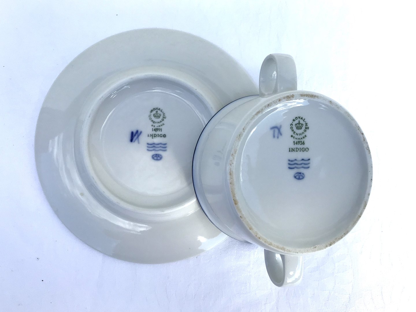 Royal Copenhagen, Indigo, Bouillon sæt #1436, 14cm bred, 5,5cm høj, 3.sortering, Design Anne Marie Trolle *Pæn stand*