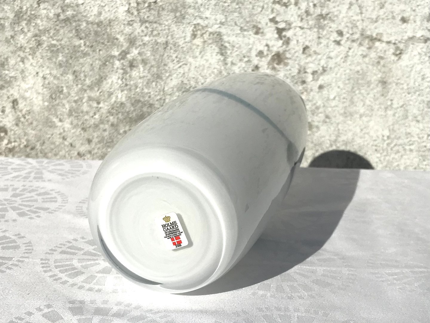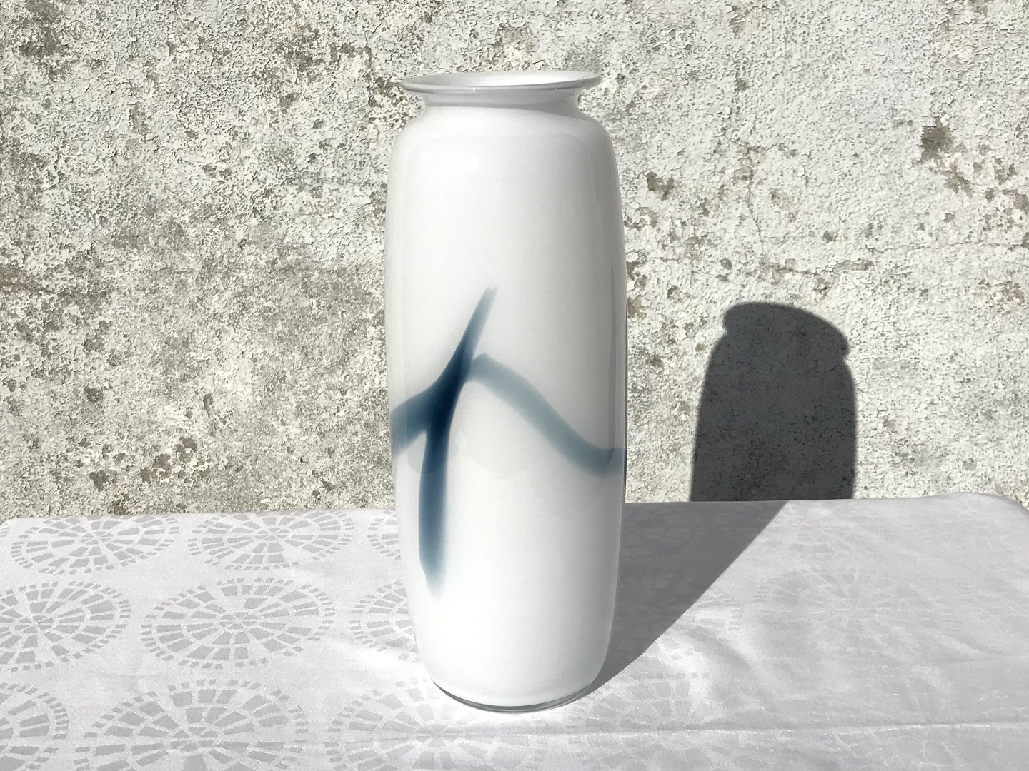 Holmegaard, Atlantis, Opal white with bluish decoration, 26cm high, 9cm in diameter, Design Michael Bang * Perfect condition *
