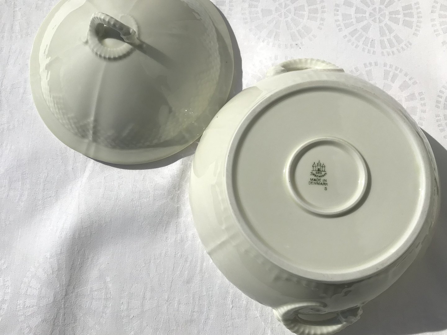 Bing & Grøndahl, Hvid elegance / Cremé porcelæn #5, 19cm høj, 25cm i diameter, 2.sortering *Pæn stand*