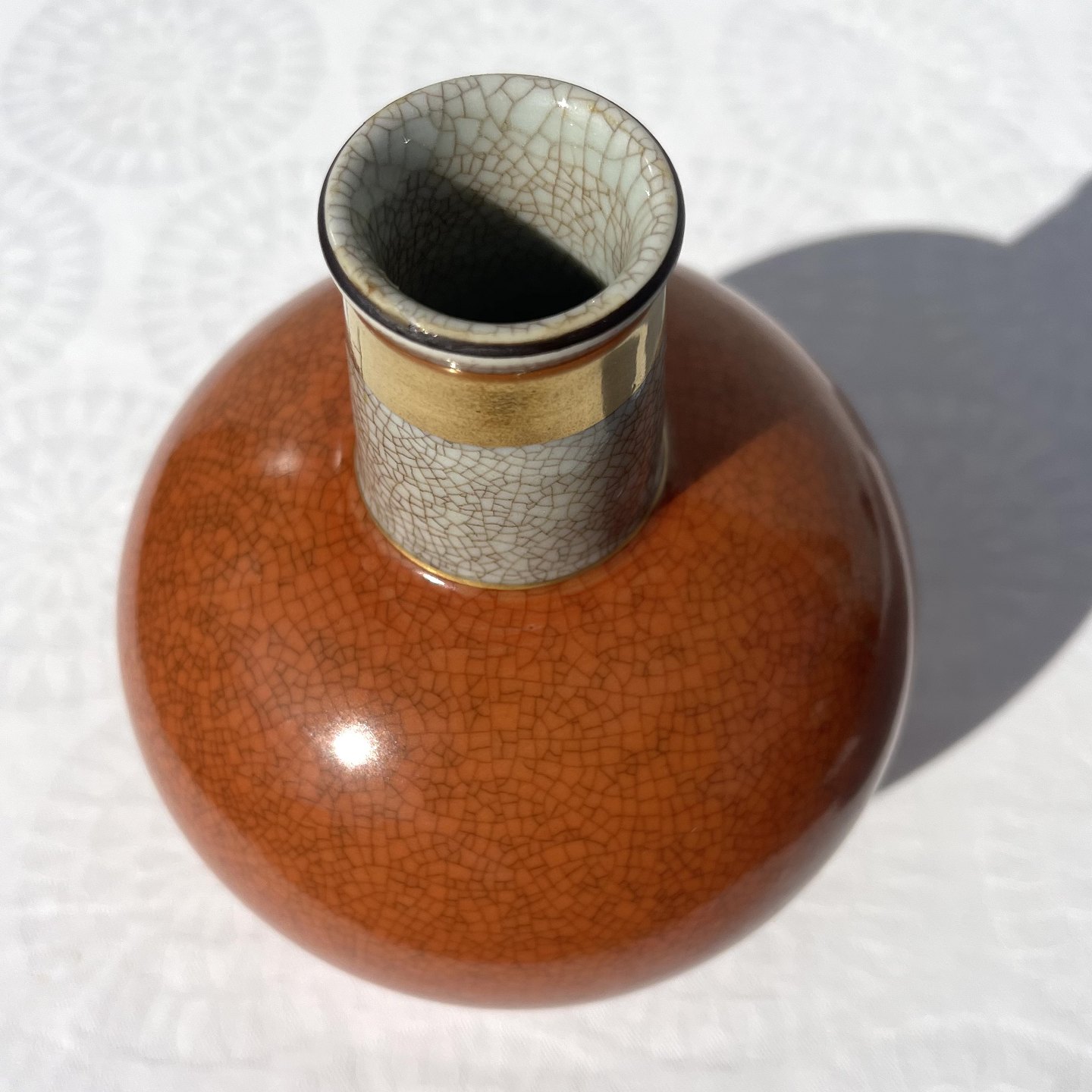 Royal Copenhagen, Orange krakele vase #212 / 3593, 17cm høj, 13cm i diameter, 1.sortering *Pæn stand*