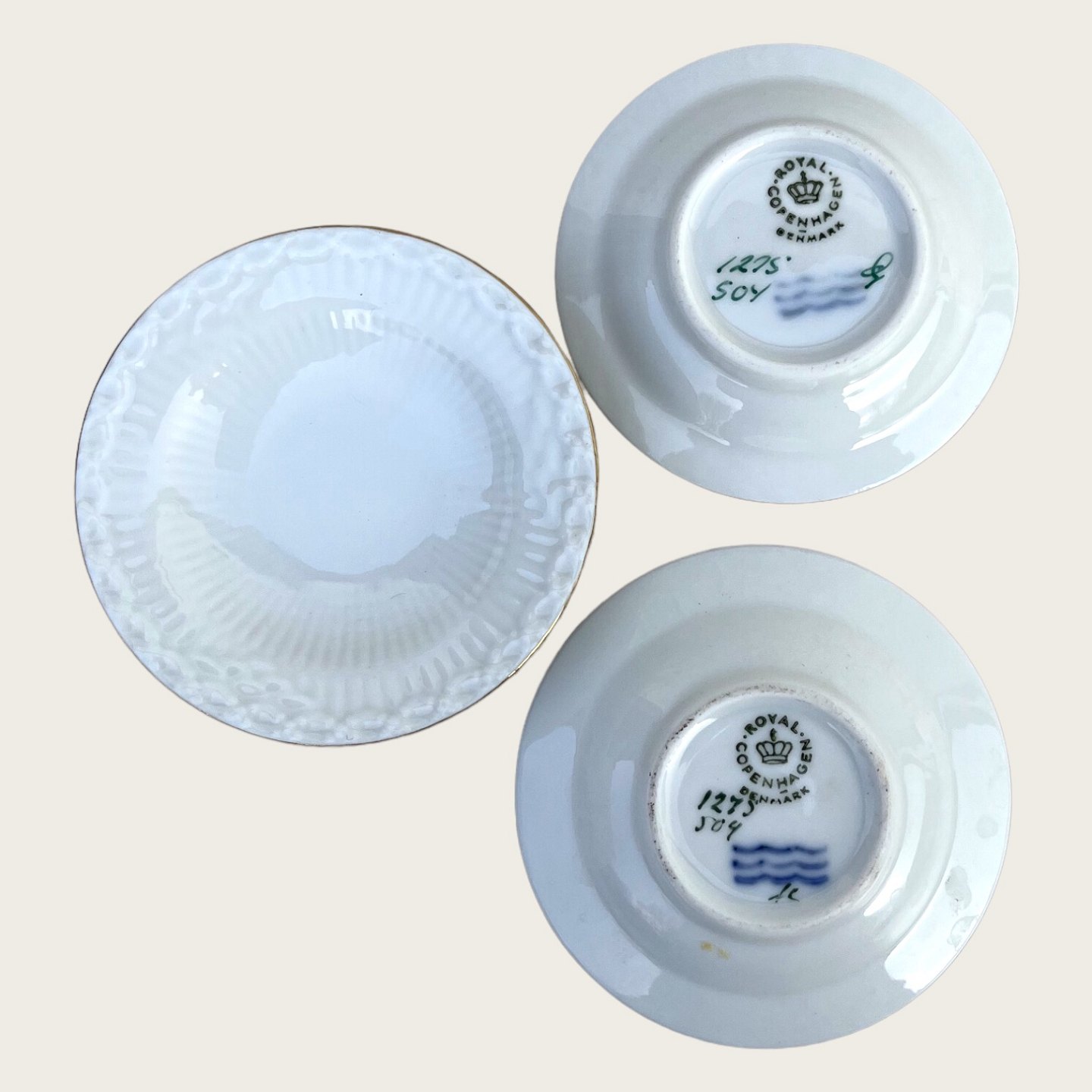Royal Copenhagen, Tradition, White fluted with gold edge, small plate / small bowl #1275 / 504, 7cm in diameter, 1275 / 504, 1st sorting *Nice condition*