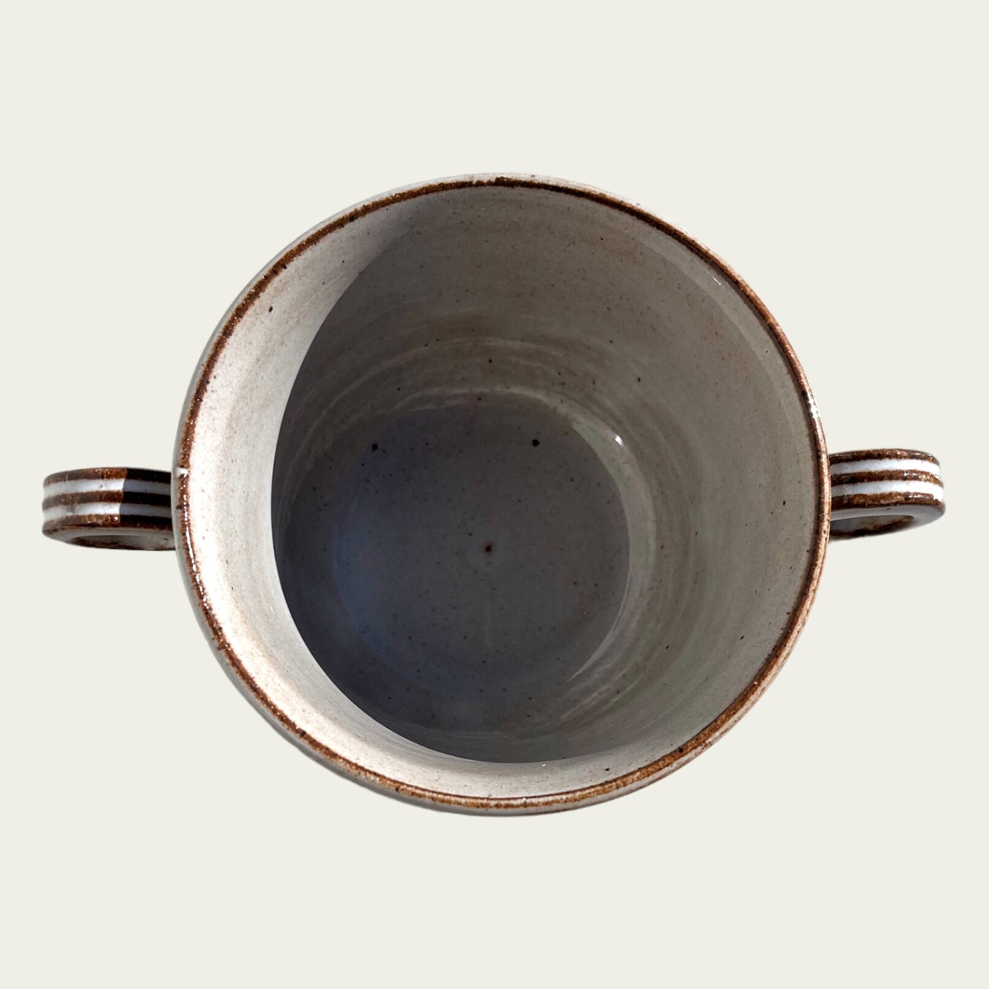 Stogo stoneware, Mørkøv, bowl with handle, 20cm wide, 9.5cm tall, with stamp, design herluf gottshalk olsen *nice condition *